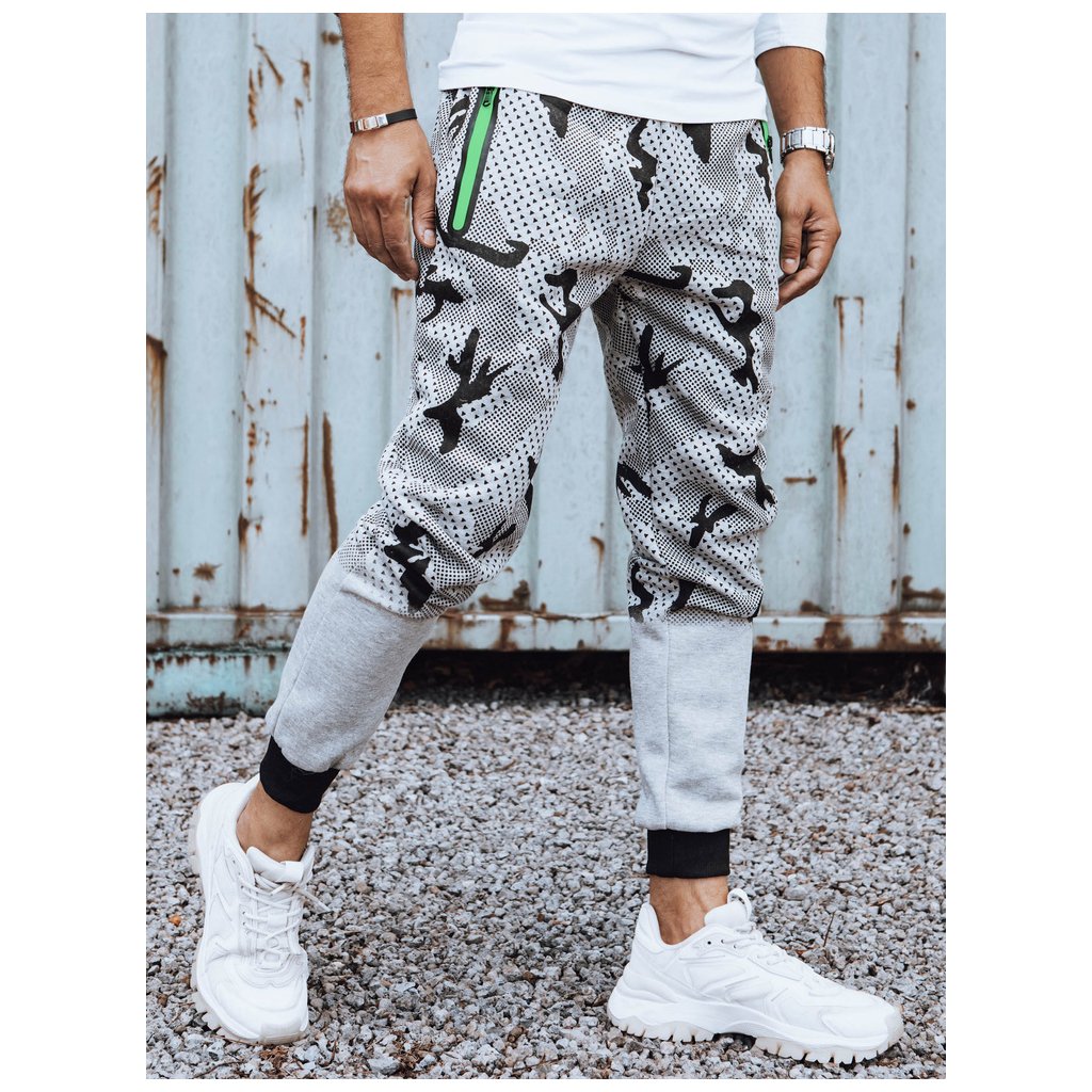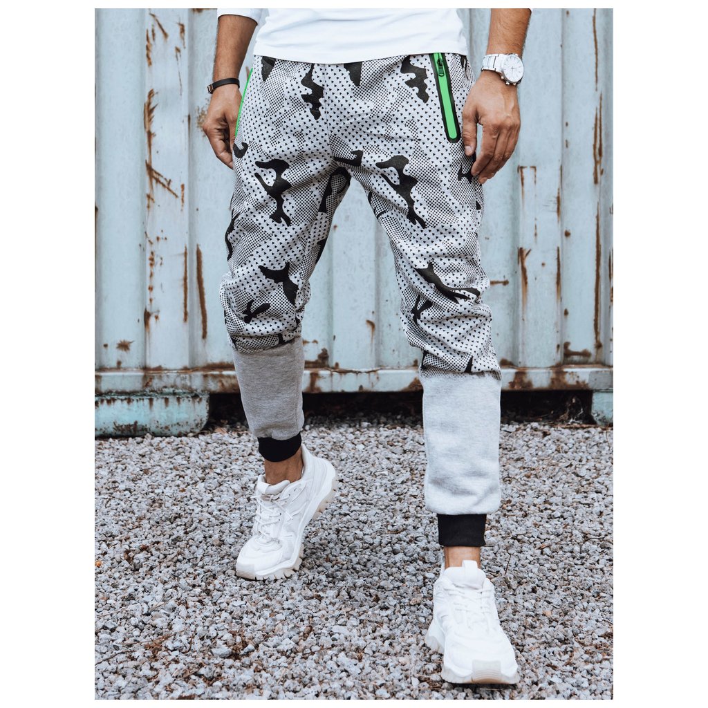 Pánske tepláky. Vyrobené z mäkkej, príjemnej látky. Módny maskáčový vzor. Dve predné vrecká na zips. Rebrovaný pás a manžety. Nastaviteľný pás so sťahovacou šnúrkou. Zloženie: 65% bavlna, 35% polyester.