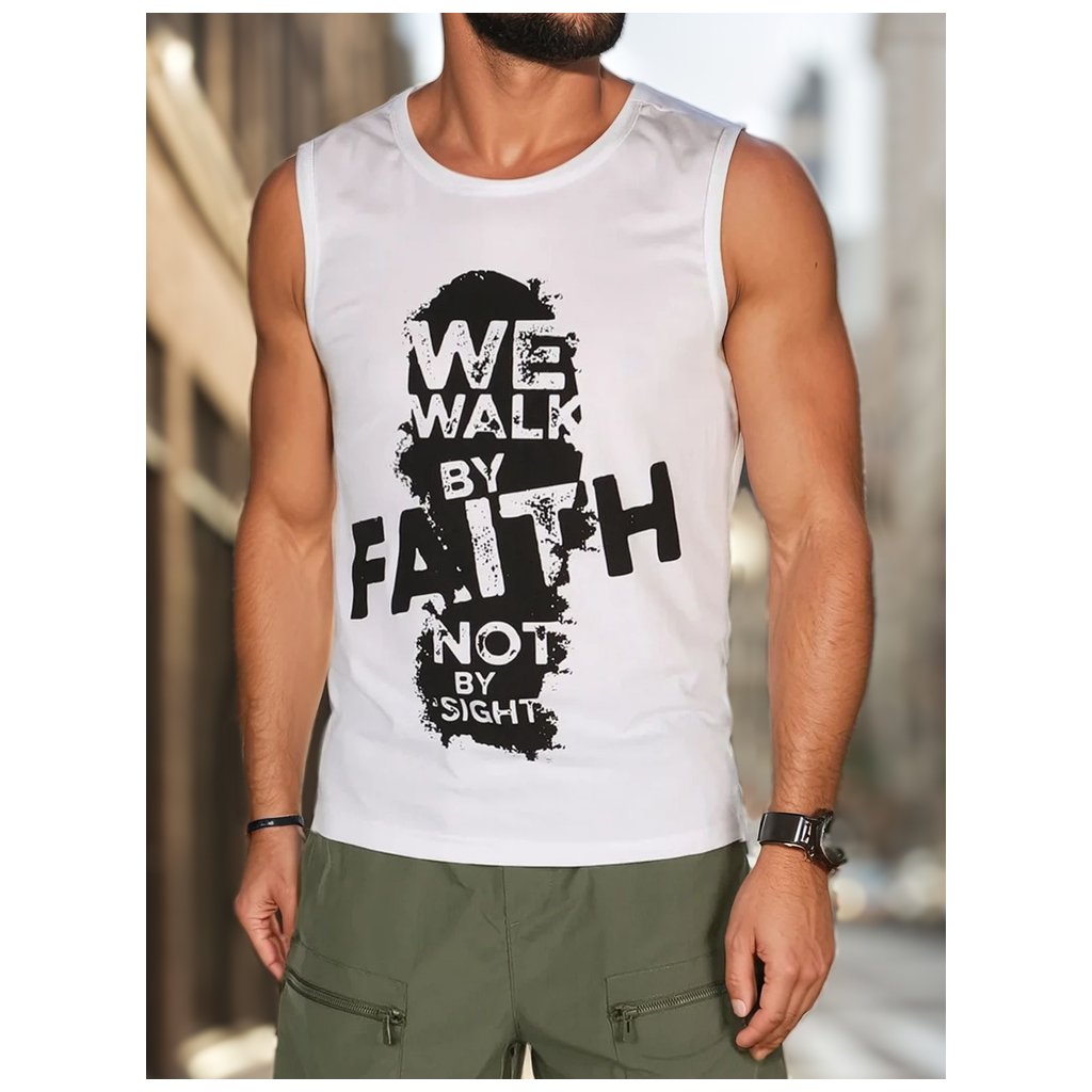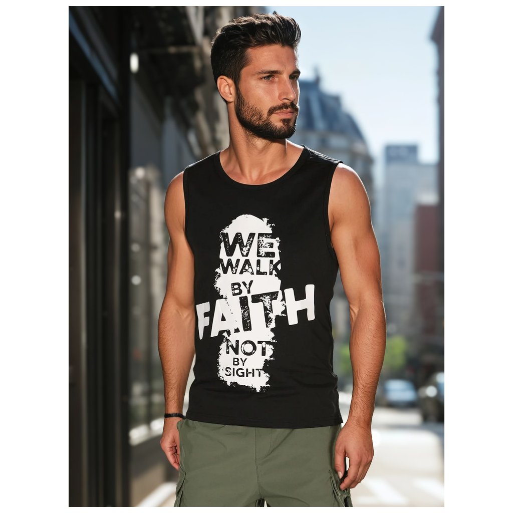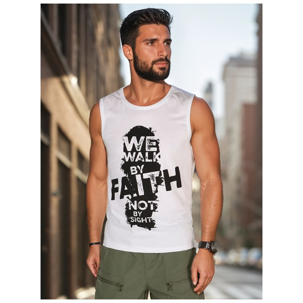 Toto pánske tričko bez rukávov s potlačou „Chodíme vierou, nie zrakom“ je ideálne pre jarnú a letnú sezónu. Okrúhly výstrih a voľný strih zaisťujú pohodlie a úplnú voľnosť pohybu. Vysoko kvalitný materiál perfektne sadne a výrazna potlač dodá každému outfitu osobitý nádych. Ideálne pre každodenný mestský vzhľad.