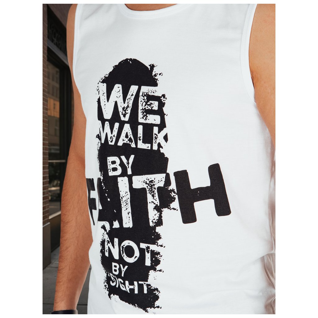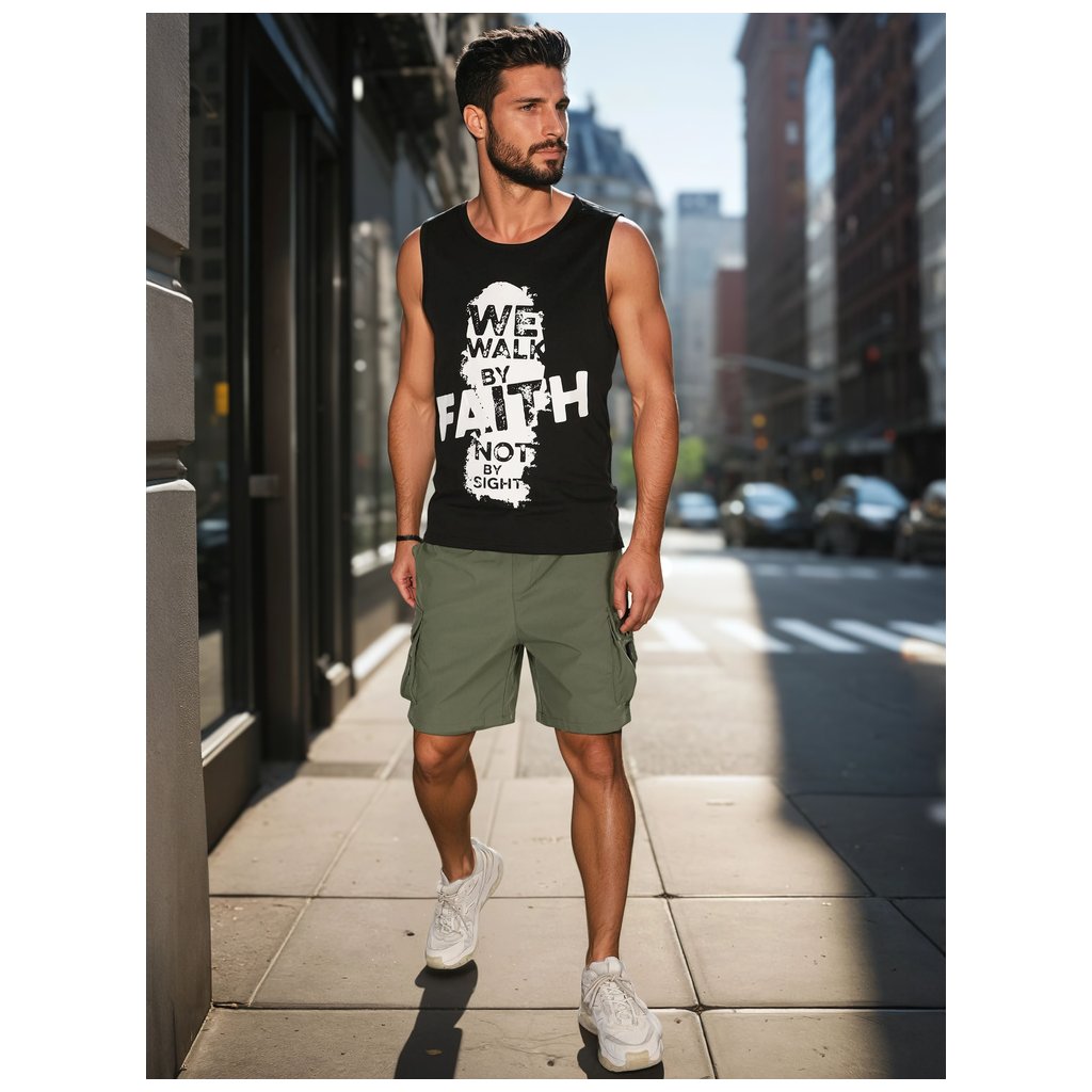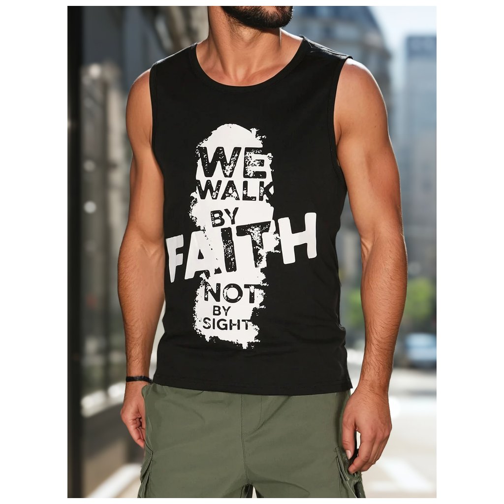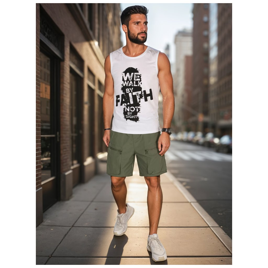 Toto pánske tričko bez rukávov s potlačou „Chodíme vierou, nie zrakom“ je ideálne pre jarnú a letnú sezónu. Okrúhly výstrih a voľný strih zaisťujú pohodlie a úplnú voľnosť pohybu. Vysoko kvalitný materiál perfektne sadne a výrazna potlač dodá každému outfitu osobitý nádych. Ideálne pre každodenný mestský vzhľad.