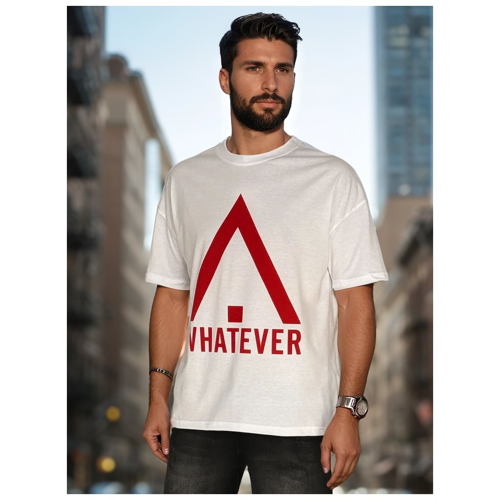 Toto pánske tričko má voľný strih a je navrhnuté pre moderný, ležérny štýl. Veľká, výrazná grafická potlač s nápisom „WHATEVER“ na prednej strane zdôrazňuje ležérny a nezávislý charakter tohto kúsku. Pohodlný strih, mäkká tkanina a klasický okrúhly výstrih robia toto tričko ideálnym na každodenné nosenie.