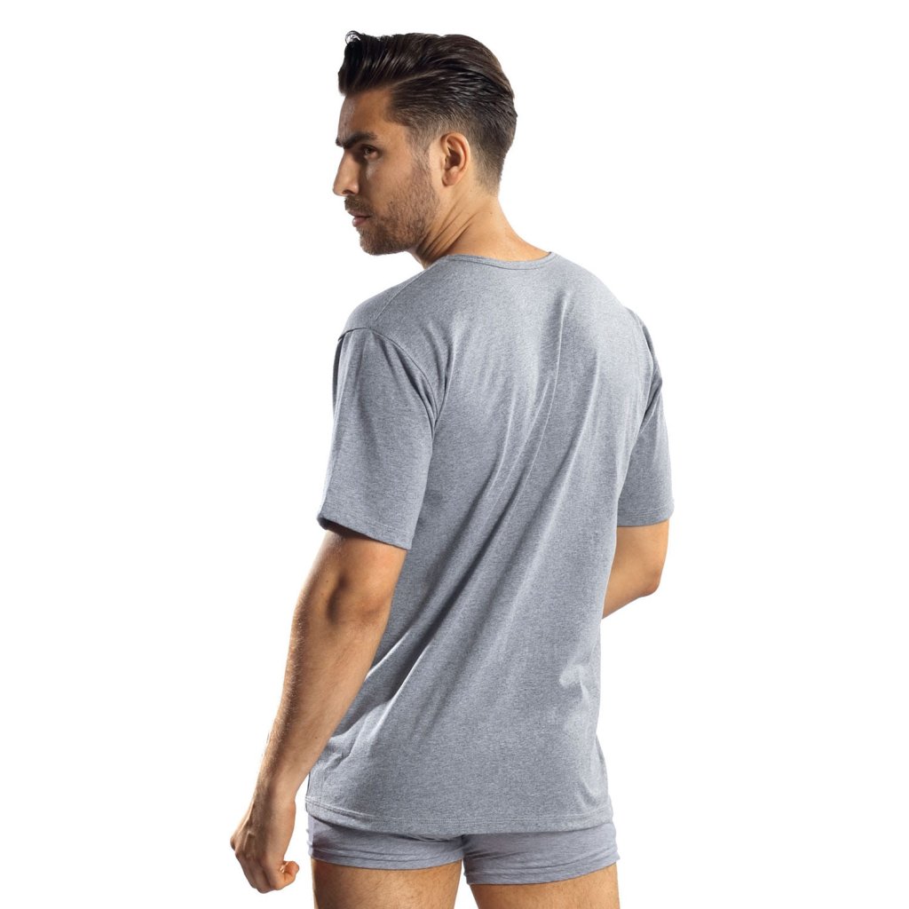 Pánske tričko Reviver F5571 T2 je univerzálnym základom pre každodenný styling. Mäkká žerzejová tkanina s vysokým podielom bavlny poskytuje pohodlný pocit, zatiaľ čo prídavok elastanu zaisťuje, že sa materiál prispôsobí telu a dobre splýva s pohybom. Klasický výstrih do V skrášľuje dekolt a vyzerá skvele samostatne alebo pod košeľou. Krátke rukávy a hladký povrch uľahčujú kombinovanie s džínsami alebo ako vrstvená vrstva. Jednoduchá, čistá predná časť bez potlačí zdôrazňuje nadčasový, minimalistický charakter. Lemovanie výstrihu stabilizuje tvar a zvyšuje odolnosť. Hladký, jednotný povrch materiálu sa dobre hodí ako prvá vrstva pod sveter alebo bundu. Toto praktické tričko na každodenné nosenie kombinuje pohodlie, voľnosť pohybu a estetiku bez zbytočných ozdôb.Pánske tričko s výstrihom do V