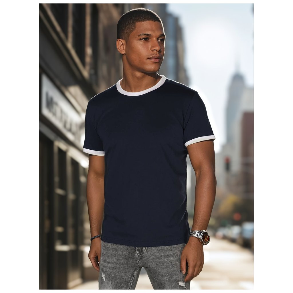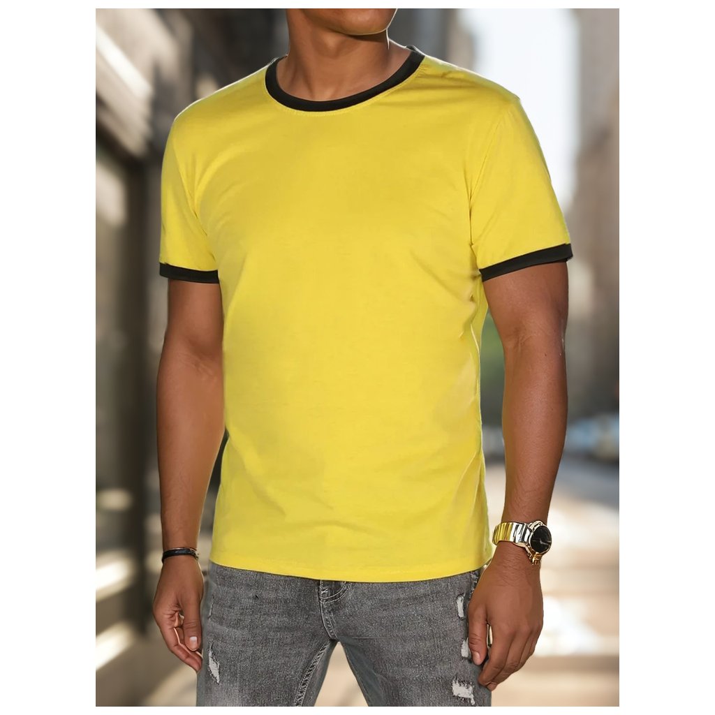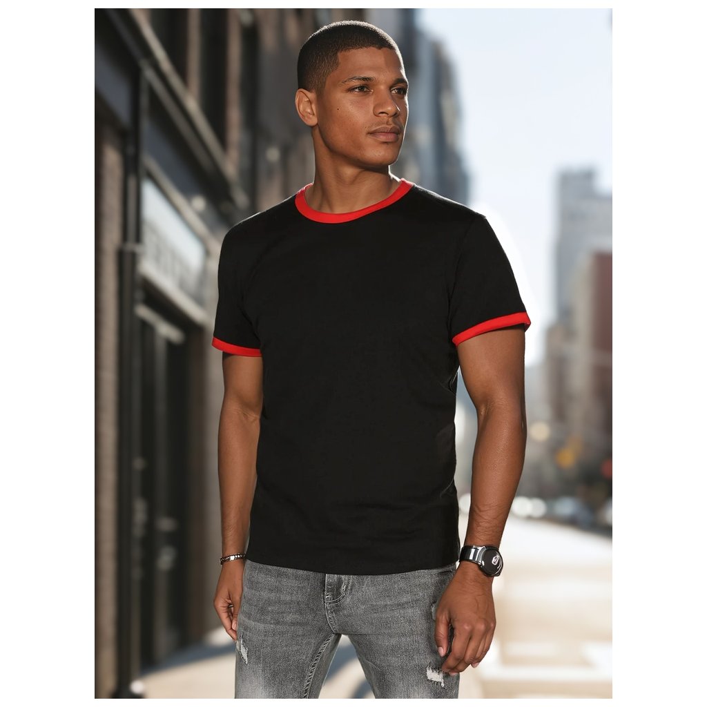 Toto základné pánske tričko s univerzálnym strihom je ideálne pre tých, ktorí oceňujú jednoduchosť a pohodlie. Výstrih a manžety rukávov sú zdobené kontrastnými pruhmi, ktoré dodávajú tričku osobitý charakter. Je vyrobené z mäkkej, priedušnej látky, je ideálne pre teplejšie dni. Hodí sa k mestskému aj ležérnemu jarnému outfitu.