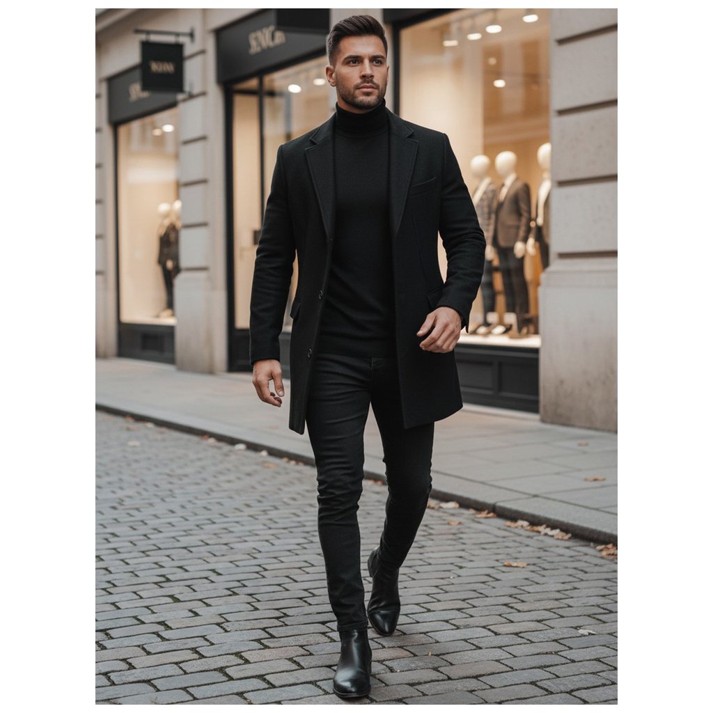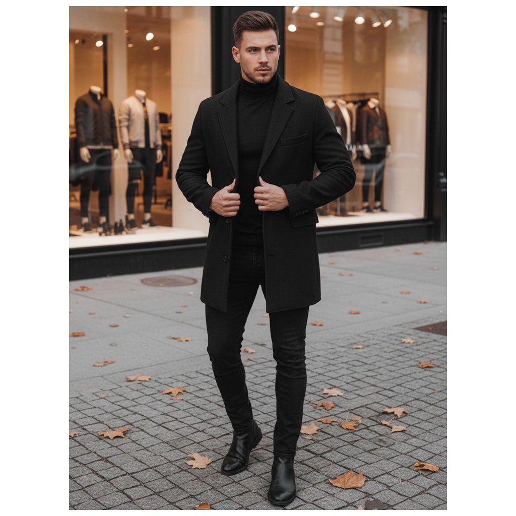 - Čierny pánsky kabát.