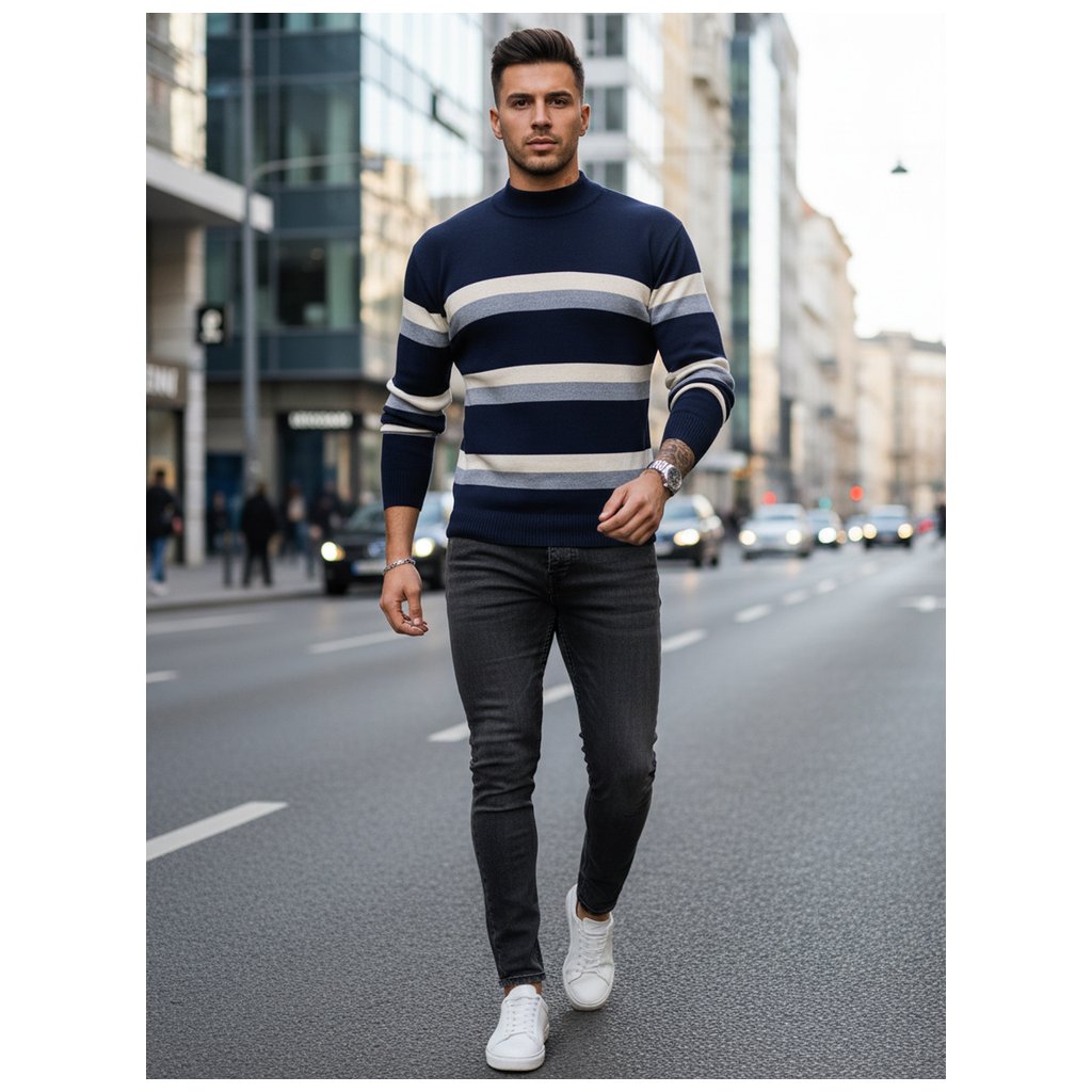 Pánsky pruhovaný sveter Farba tmavomodrá DSTREET WX2126