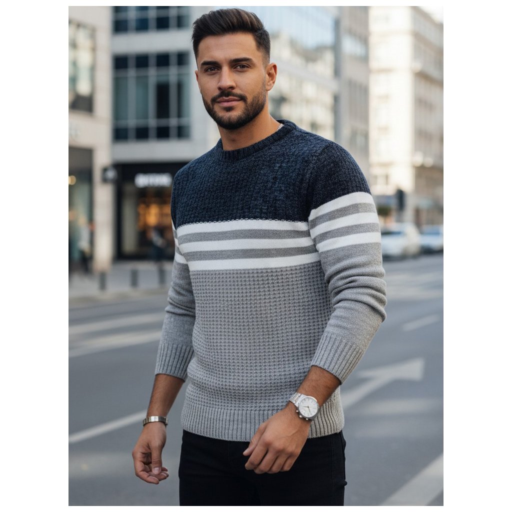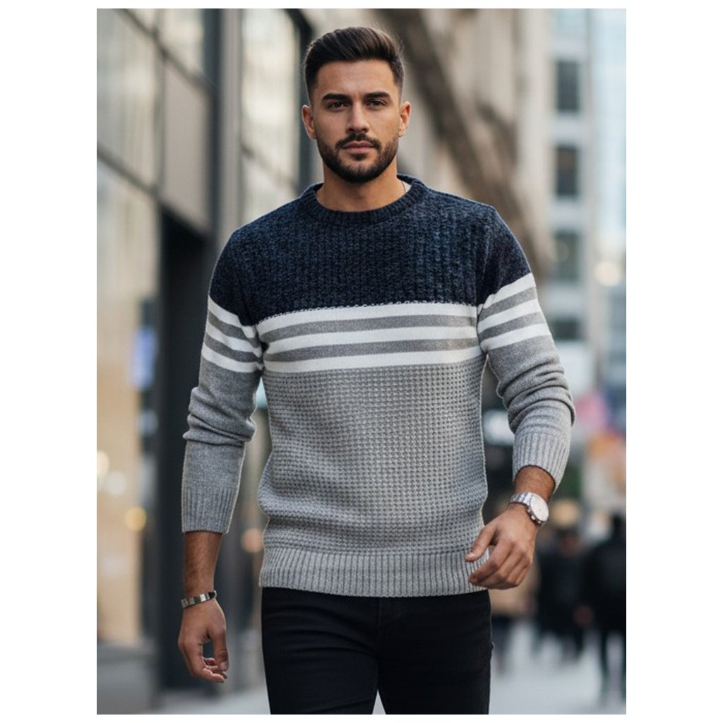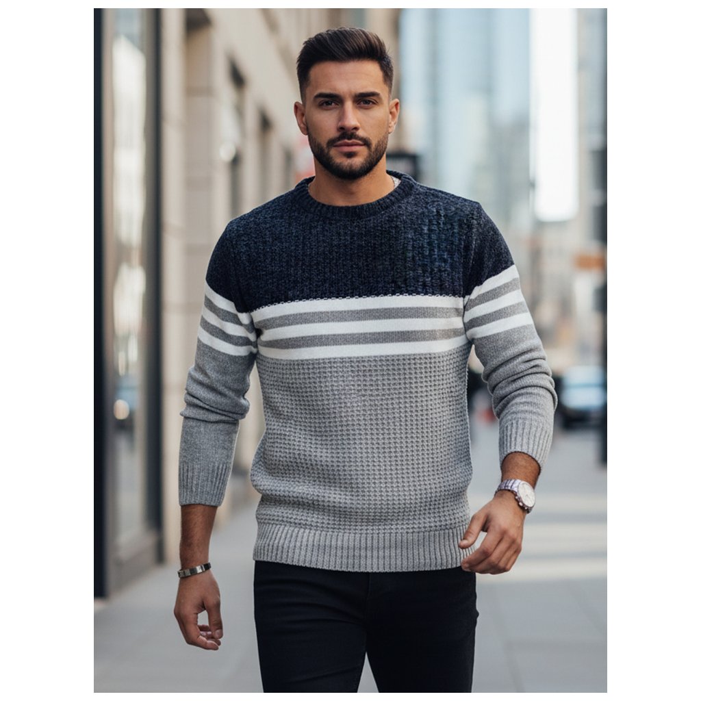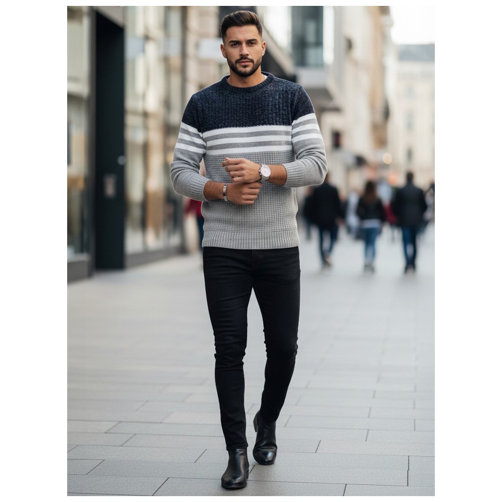 Teplý pánsky sveter s výrazným pruhovaným vzorom, ideálny pre chladnejšie dni. Vyrobený z mäkkej a pružnej pleteniny, poskytuje pohodlie a perfektný strih. Tento klasický okrúhly výstrih sa perfektne hodí k ležérnym aj elegantným outfitom a dodá každému vzhľadu charakter.