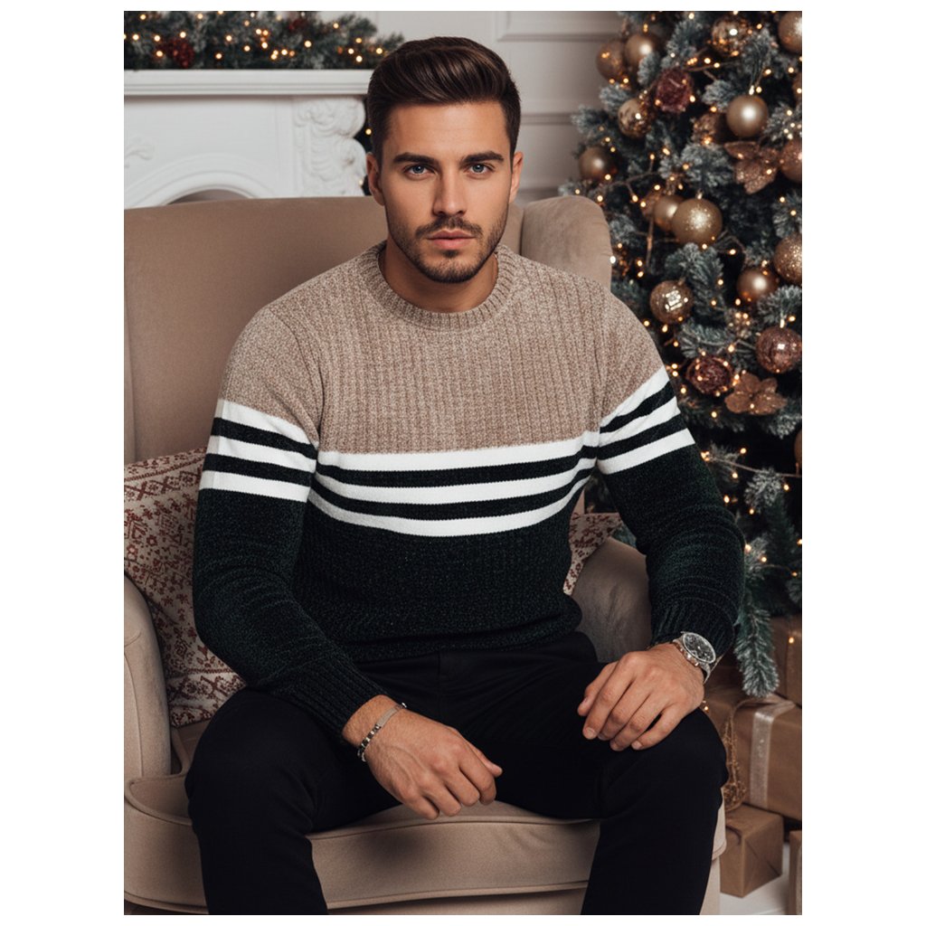 Teplý pánsky sveter s výrazným pruhovaným vzorom, ideálny pre chladnejšie dni. Vyrobený z mäkkej a pružnej pleteniny, poskytuje pohodlie a perfektný strih. Tento klasický okrúhly výstrih sa perfektne hodí k ležérnym aj elegantným outfitom a dodá každému vzhľadu charakter.