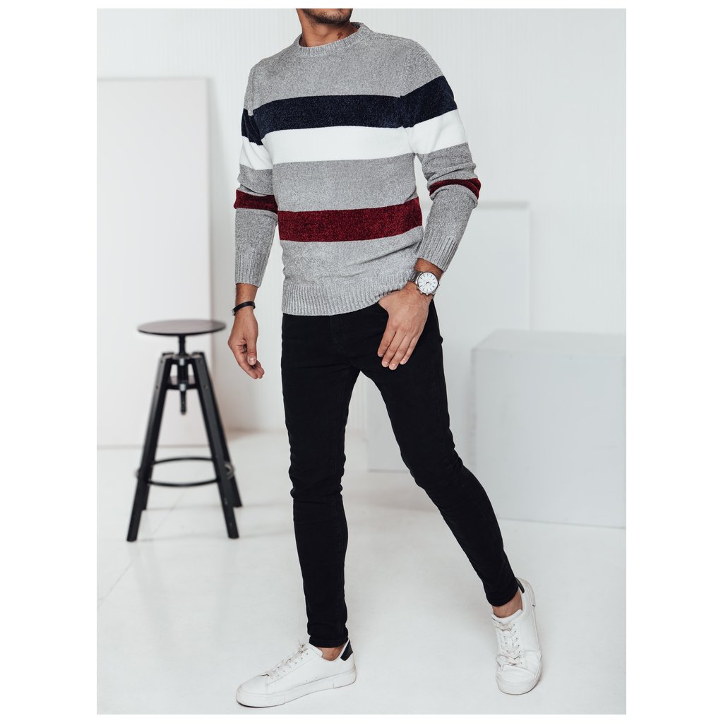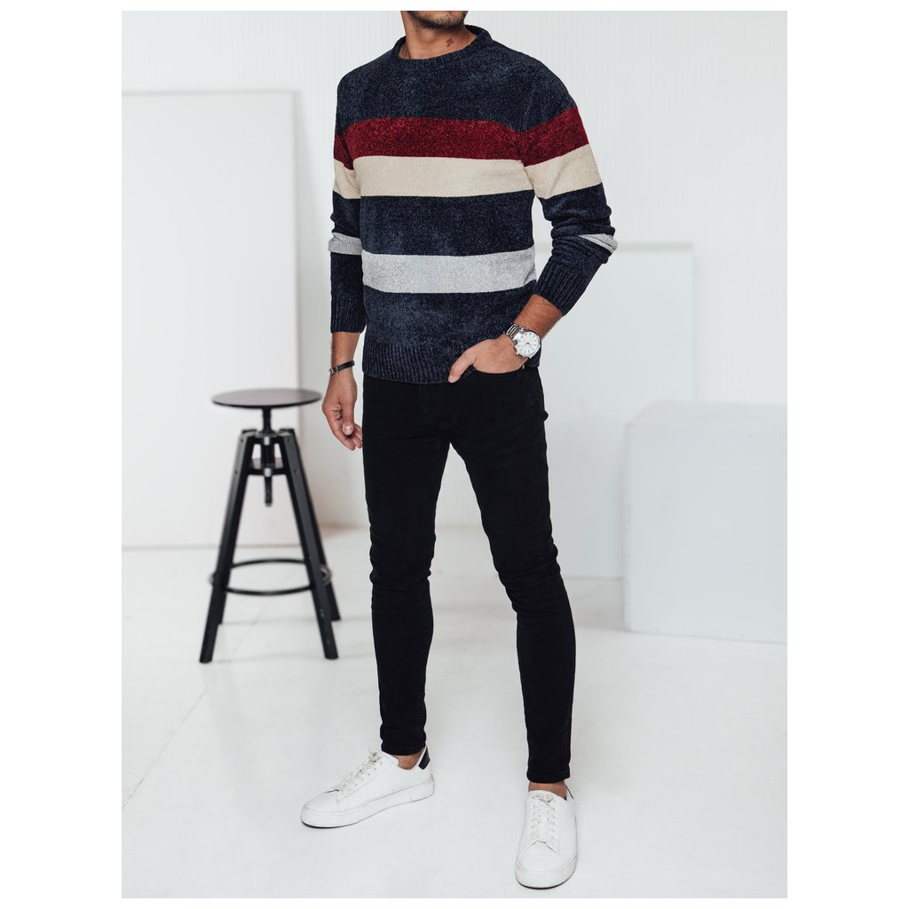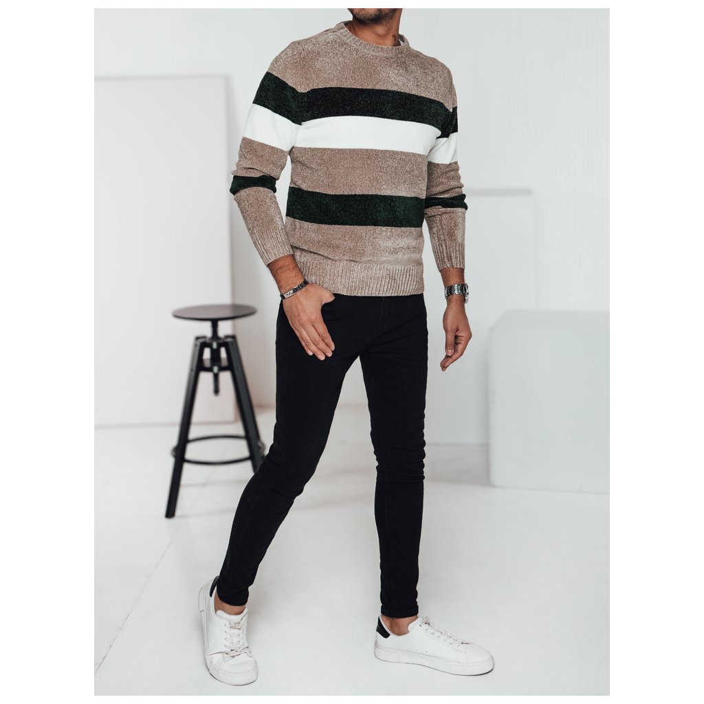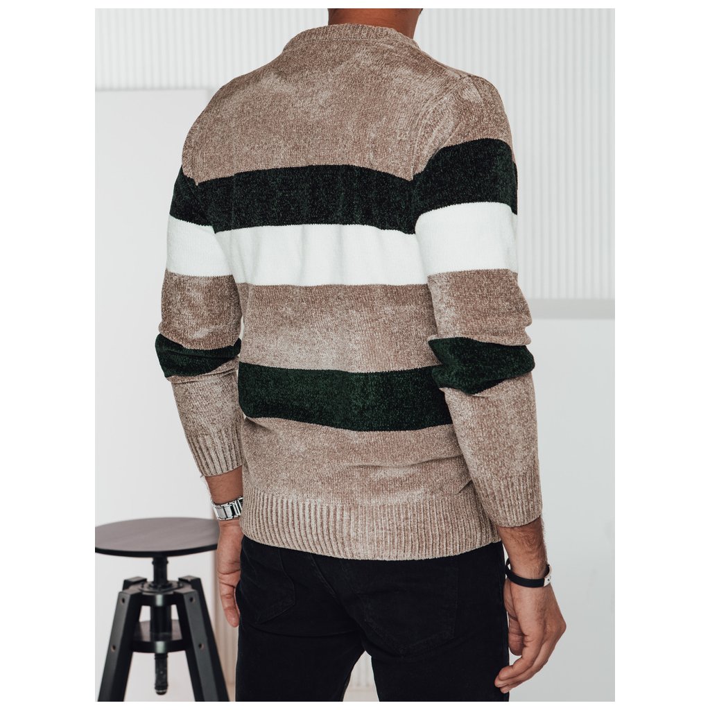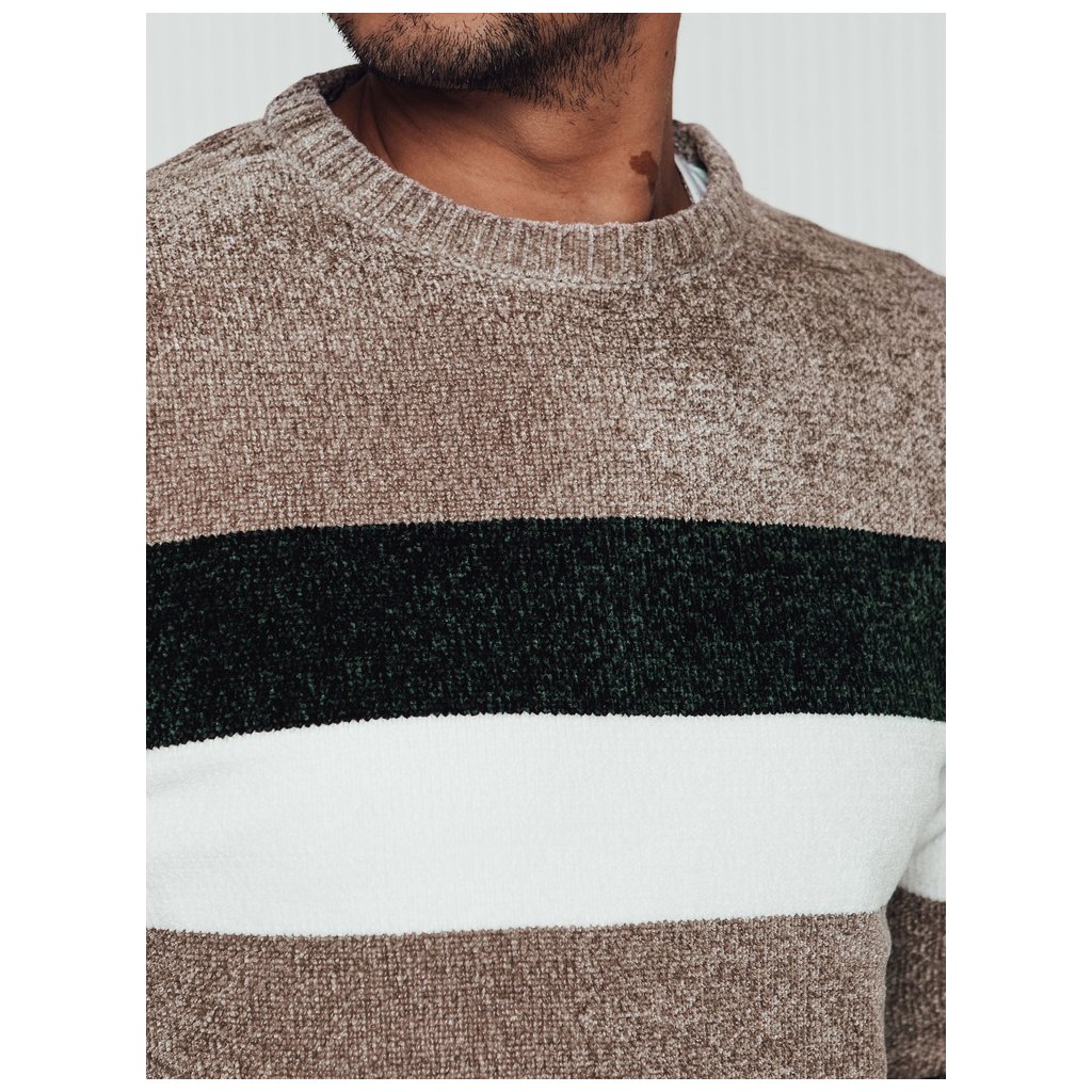 Teplý pánsky sveter s módnymi pruhmi, ideálny na chladnejšie dni. Vyrobený z mäkkého, príjemného úpletu, poskytuje pohodlie a voľnosť pohybu. Jednoduchý dizajn je ideálny pre každodenný styling a dodáva mu ležérny nádych. Perfektný k džínsom alebo chinos nohaviciam.