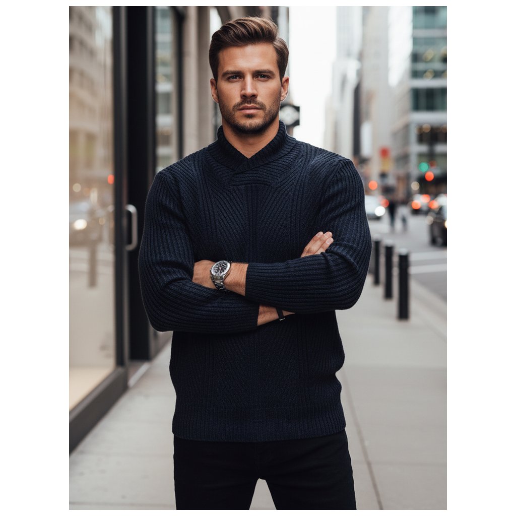 Tento sveter s elegantnou pleteninou je ideálny na chladnejšie dni. Vyrobený z vysoko kvalitného materiálu pre celodenné pohodlie a nosenie. Jeho všestranný dizajn sa perfektne hodí k ležérnym aj elegantnejším outfitom. Perfektná voľba pre mužov, ktorí oceňujú klasický štýl s moderným nádychom.