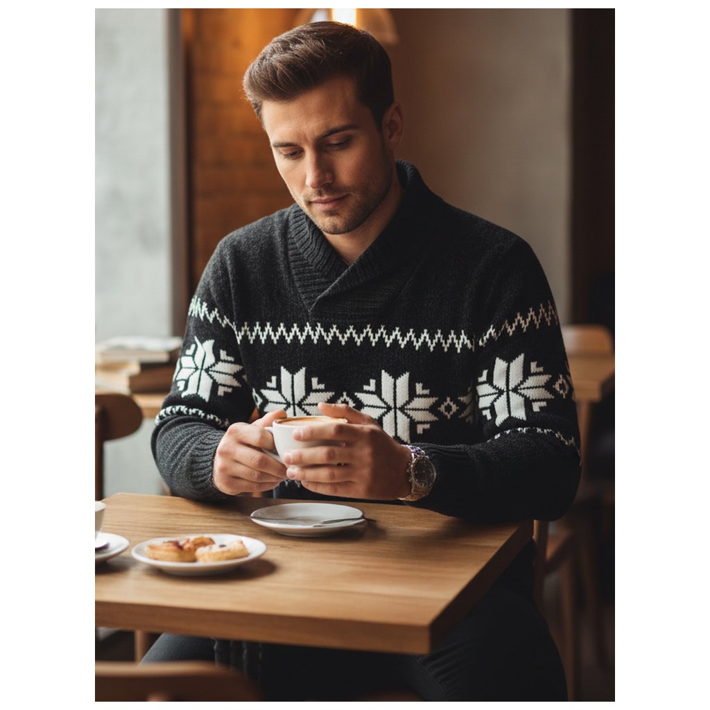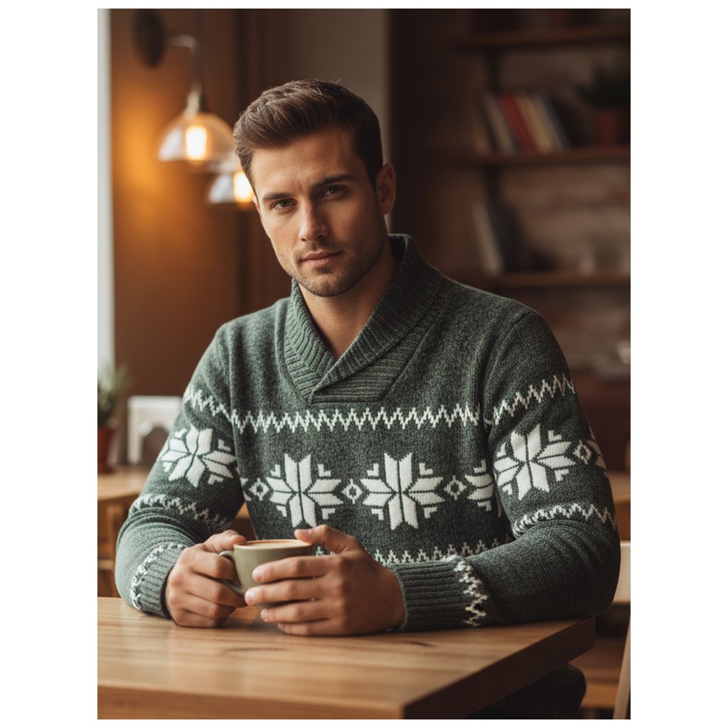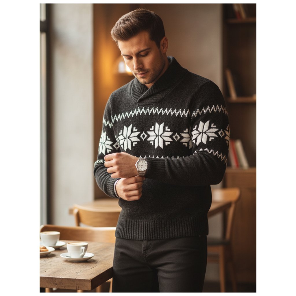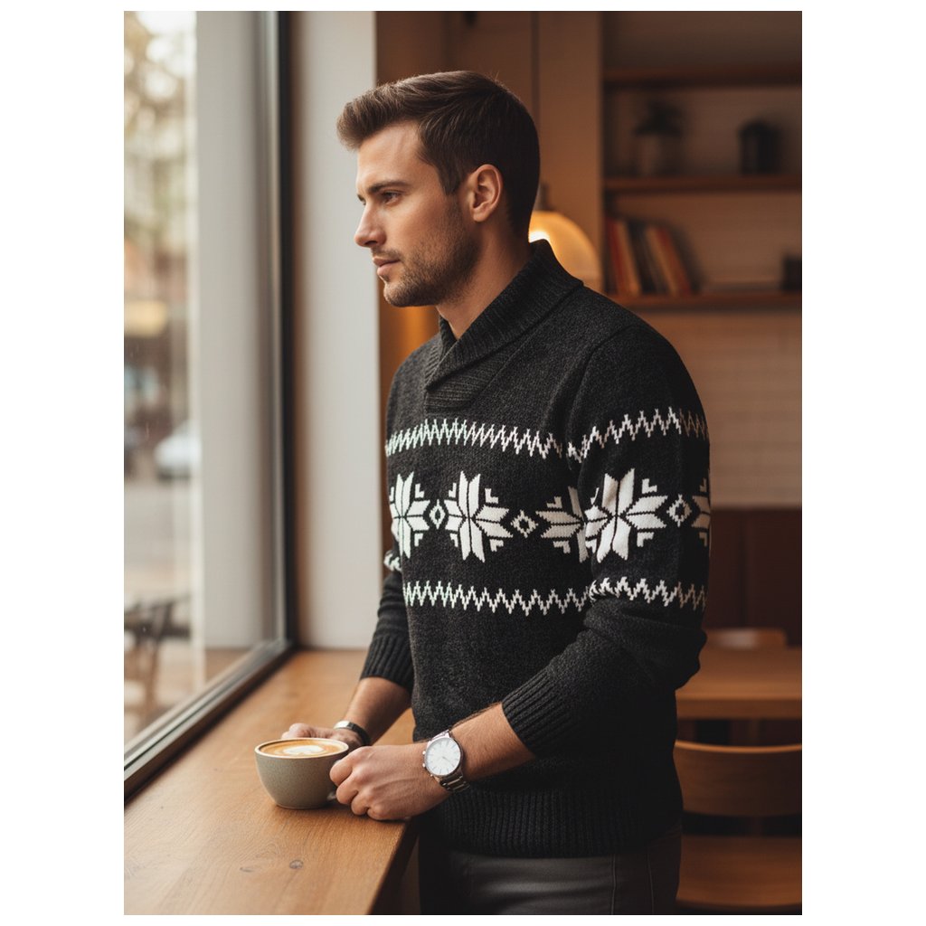 Tento štýlový sveter s motívom snehovej vločky je perfektným riešením pre chladné dni. Je vyrobený z mäkkej a príjemnej látky, ktorá poskytuje teplo a pohodlie po celý deň. Klasický strih a decentný vzor mu dodávajú jedinečný charakter, ktorý doplní ležérne outfity. Ideálny na zimné prechádzky alebo každodenné nosenie. Výnimočné remeselné spracovanie zaručuje, že tento sveter zaručene upúta pozornosť a vydrží dlho.