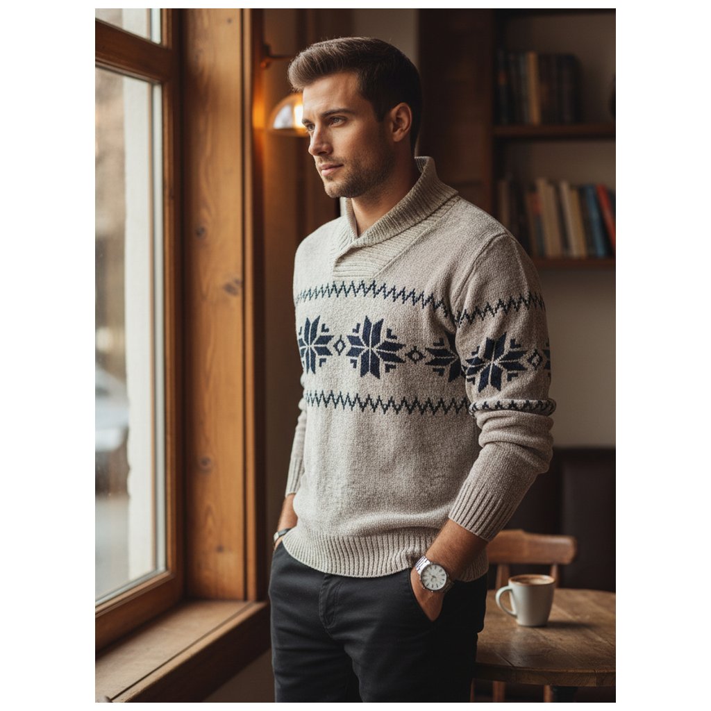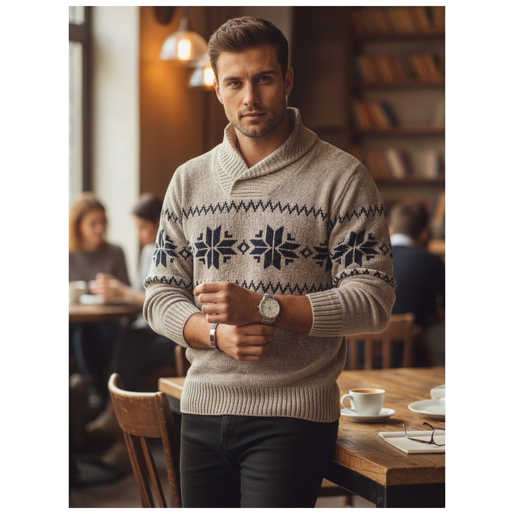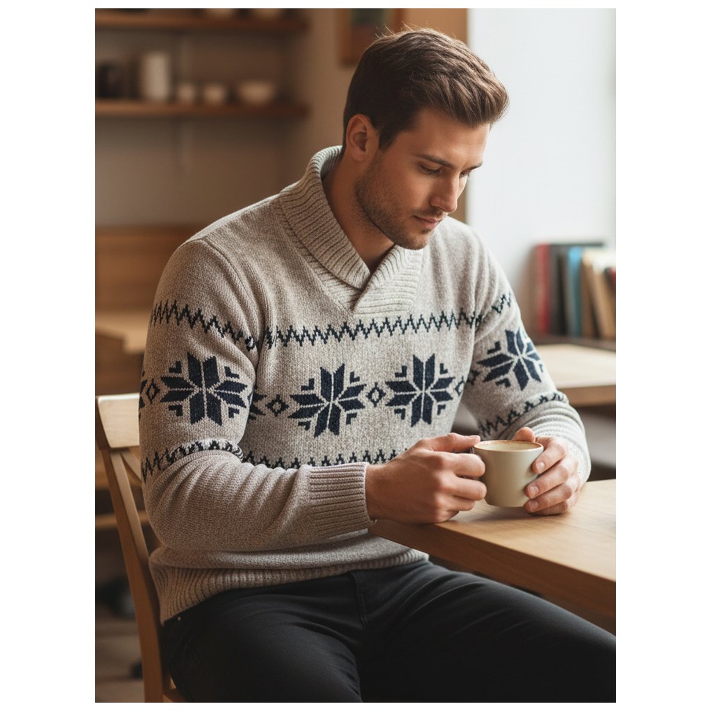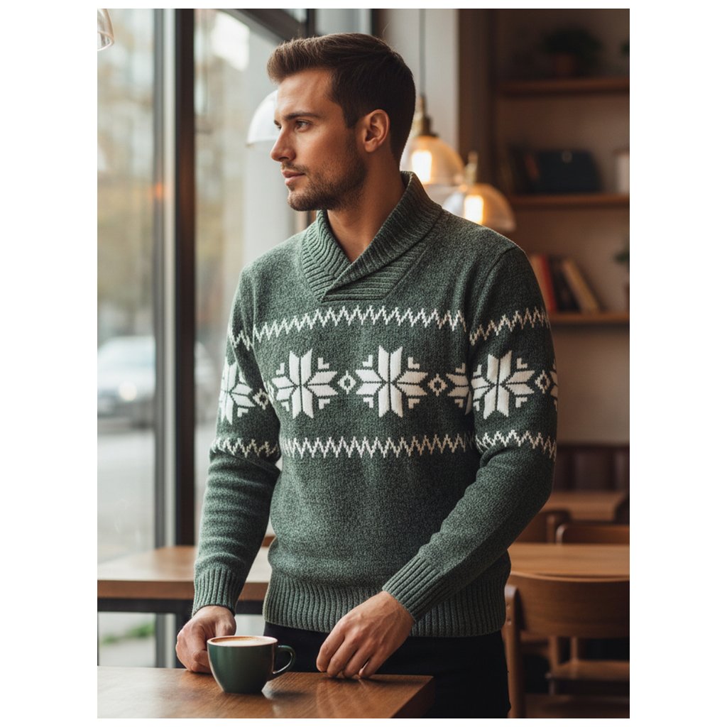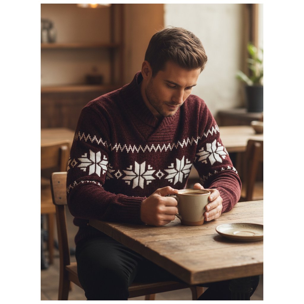 Tento štýlový sveter s motívom snehovej vločky je perfektným riešením pre chladné dni. Je vyrobený z mäkkej a príjemnej látky, ktorá poskytuje teplo a pohodlie po celý deň. Klasický strih a decentný vzor mu dodávajú jedinečný charakter, ktorý doplní ležérne outfity. Ideálny na zimné prechádzky alebo každodenné nosenie. Výnimočné remeselné spracovanie zaručuje, že tento sveter zaručene upúta pozornosť a vydrží dlho.