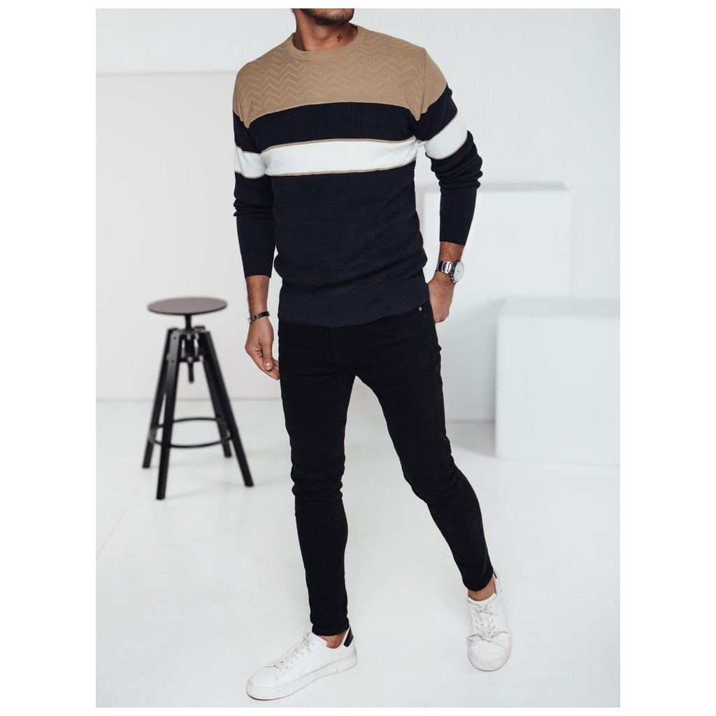 Sveter s klasickým dizajnom a moderným nádychom, ideálny na chladnejšie dni. Rebrovaný materiál a kontrastné pruhy dodávajú eleganciu, zatiaľ čo mäkký materiál zaisťuje celodenné pohodlie. Skvelá voľba pre ležérne aj formálnejšie outfity.