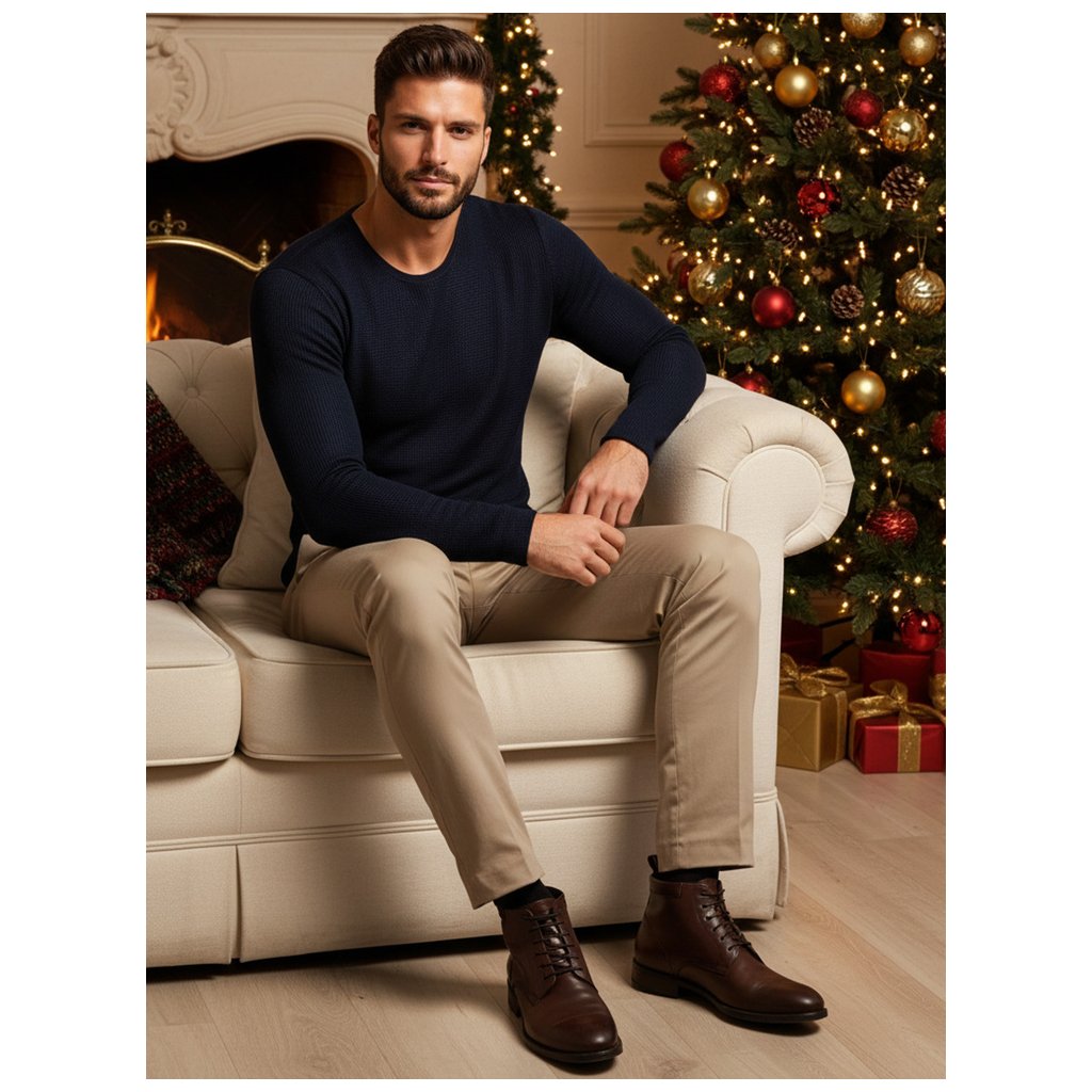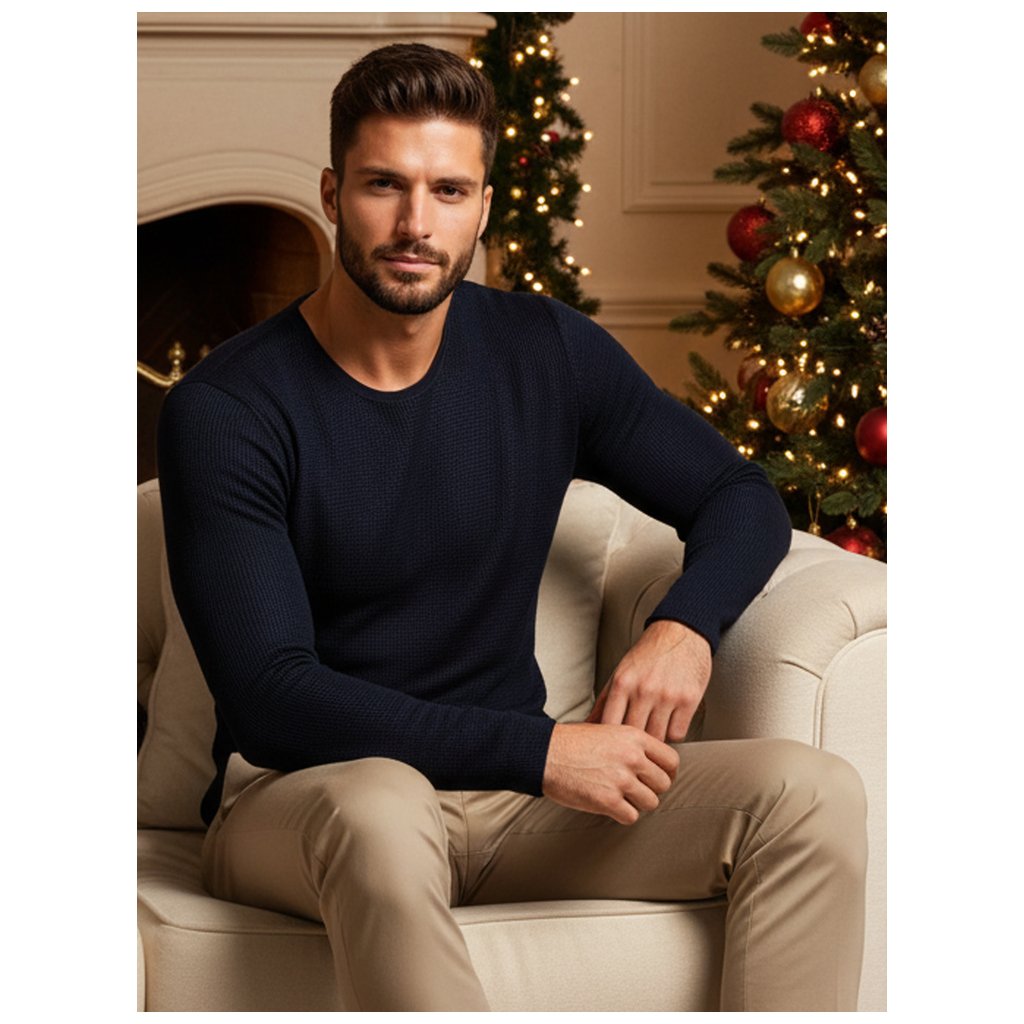 Elegantný pánsky sveter s decentnou textúrou, ideálny na chladnejšie dni. Vyrobený z vysoko kvalitného úpletu, zaisťuje pohodlie a odolnosť. Priliehavý strih lichotí postave a všestranný dizajn ho robí vhodným ako pre ležérne, tak aj pre formálnejšie outfity.