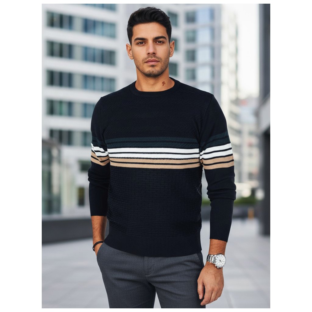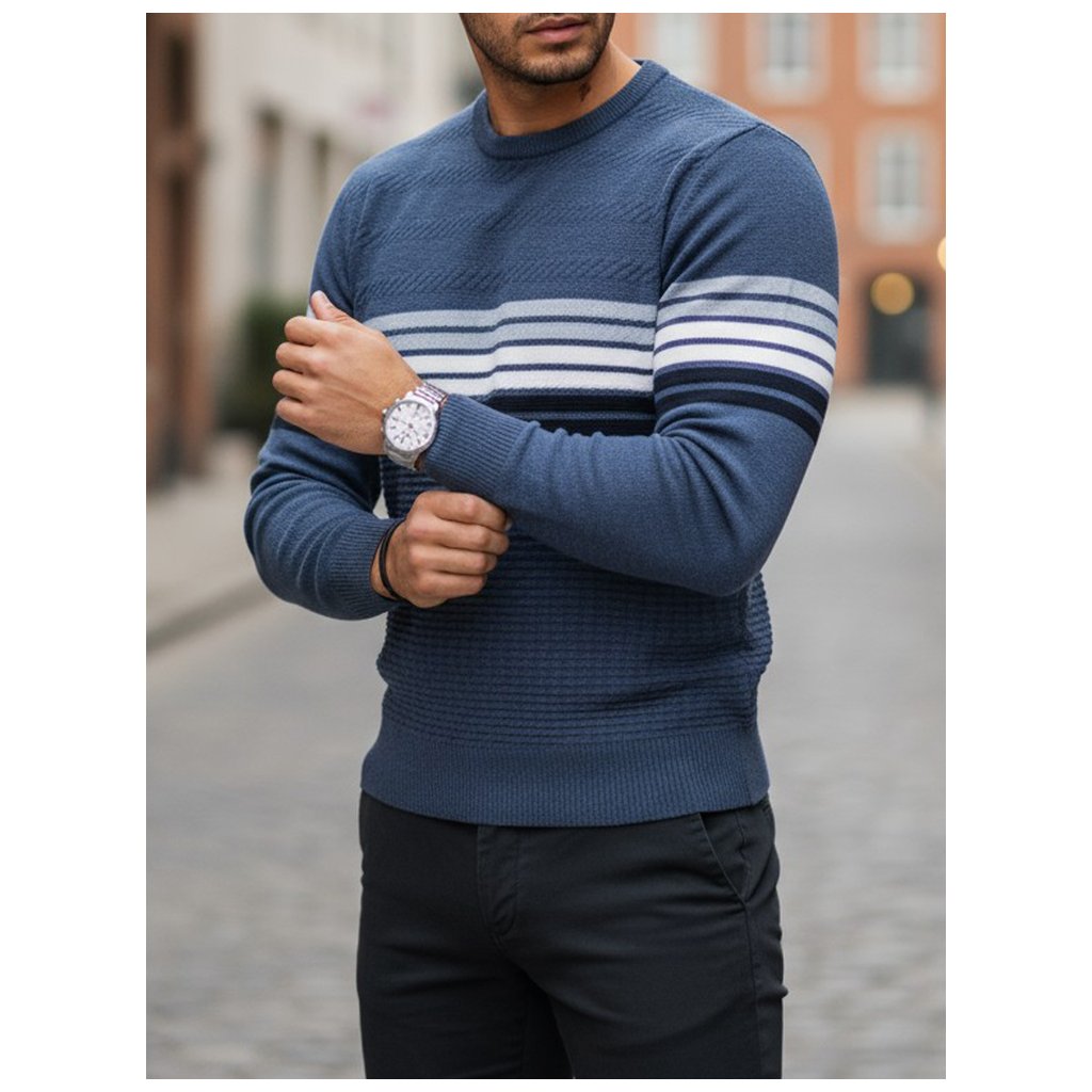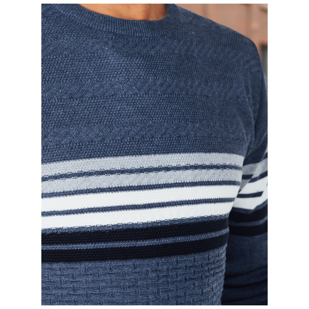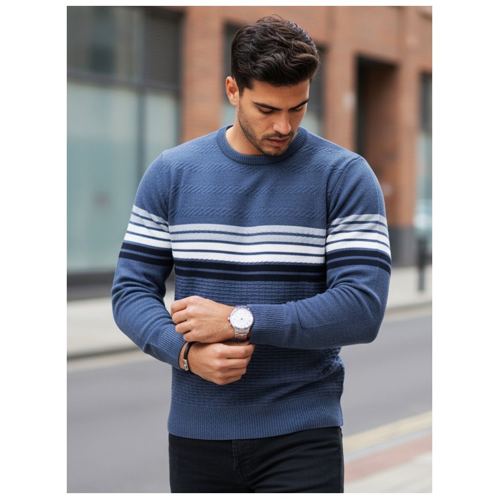 Pánsky pruhovaný sveter s okrúhlym výstrihom WX2325 modrý