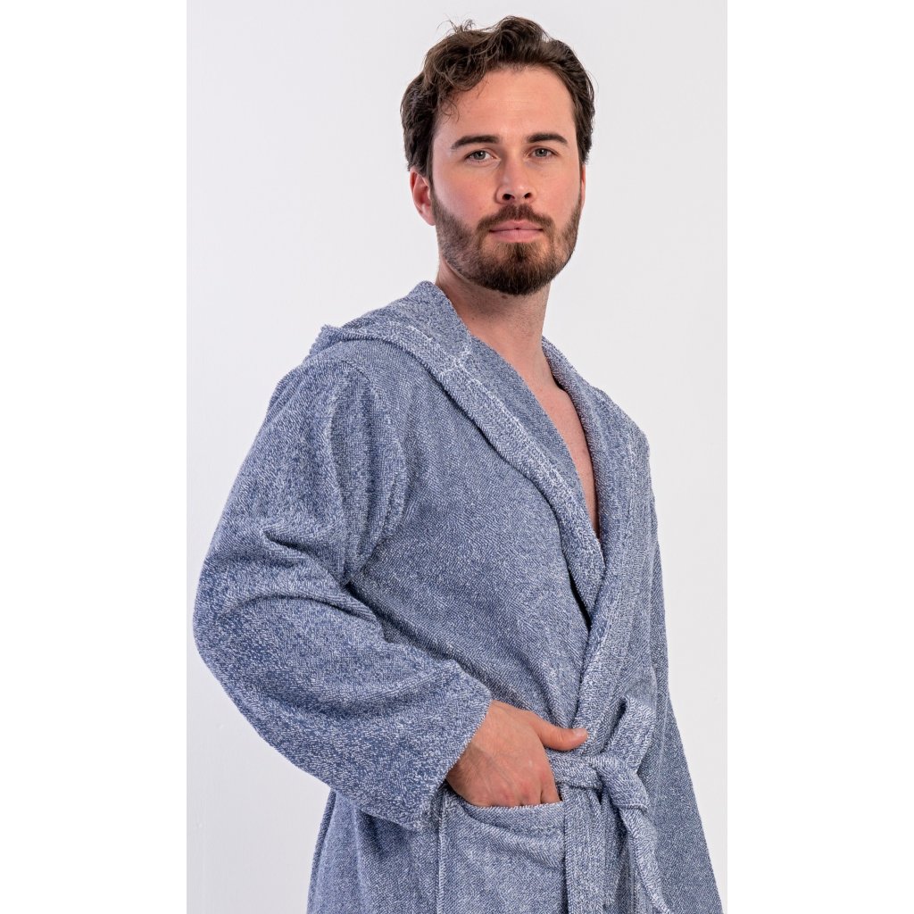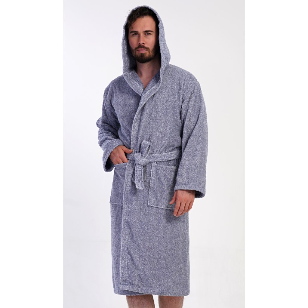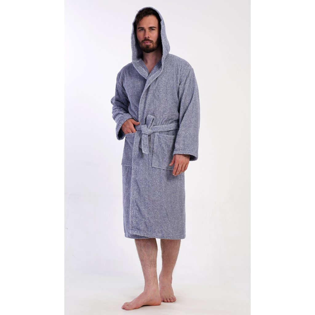 Pánsky bavlnený froté župan s kapucňou Luis. Pánsky dlhý župan s kapucňou a opaskom je vhodný po kúpeli a na domáce leňošenie na gauči. Froté župan má praktické vrecká, ktoré oceníte pri návšteve kúpeľov. Použitý bavlnený materiál je príjemný a pružný na dotyk.