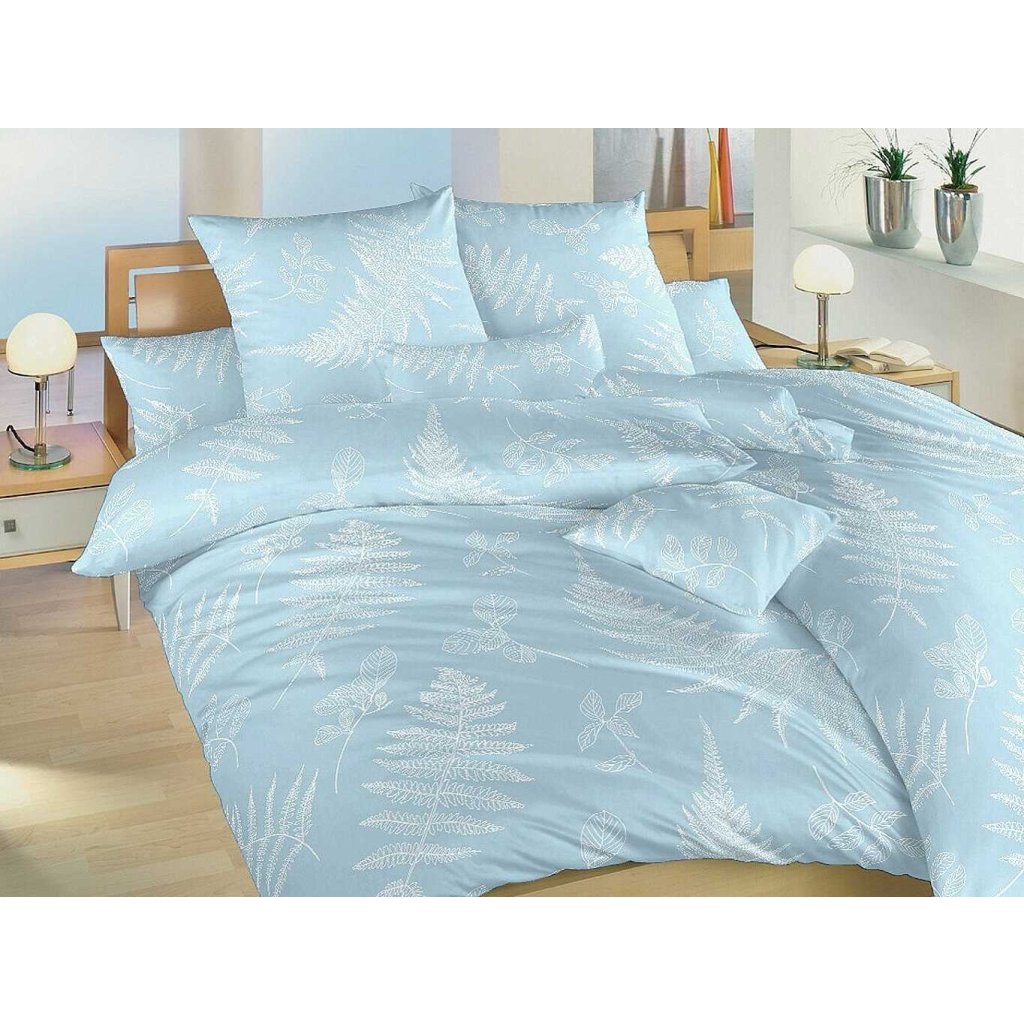 Obsah balenia: 1x vankúš o rozmere 70x90 cm a 1x obliečka na prikrývku o rozmere 140x200 cm.Dezén: Paprade biele na svetlo modrom.