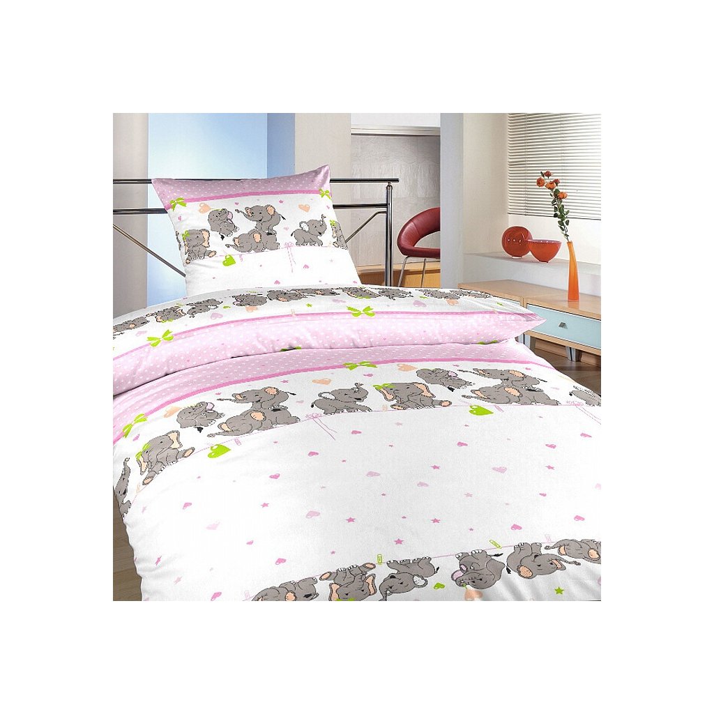Detská posteľná bielizeň bavlna krep Sloníky ružové 140×200 cm + 70×90 cm