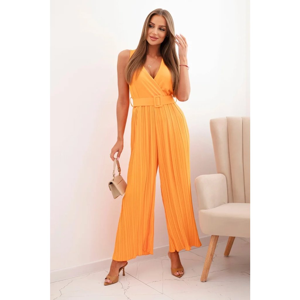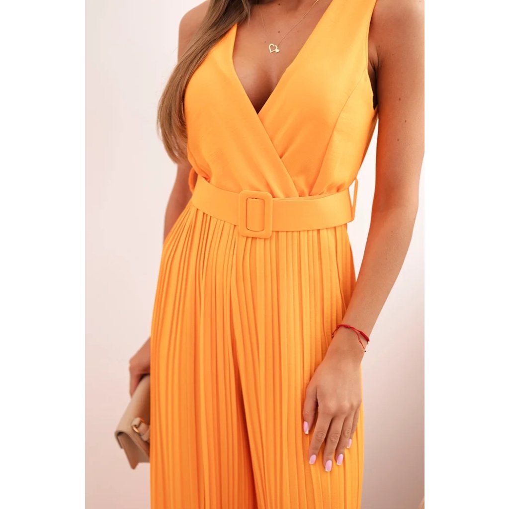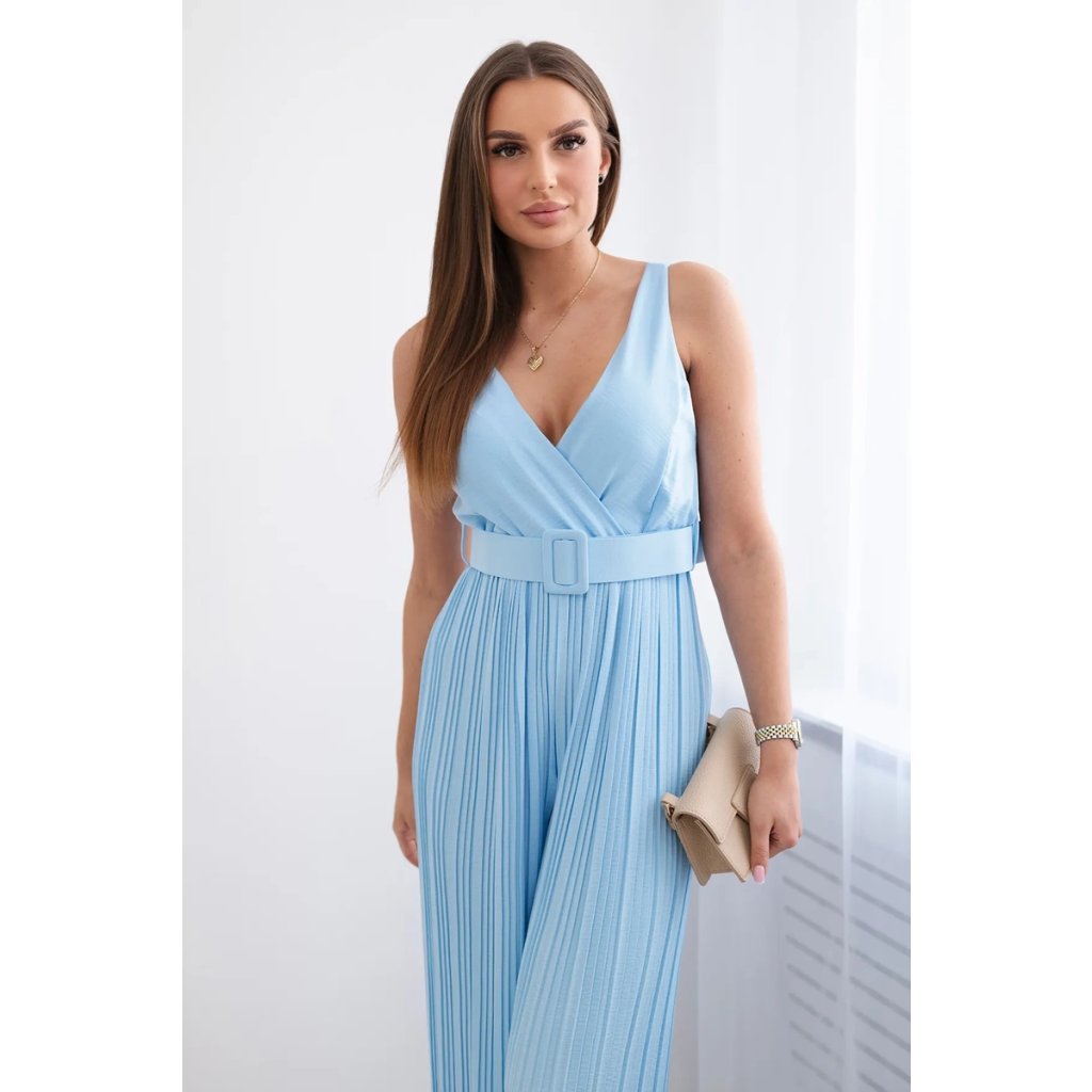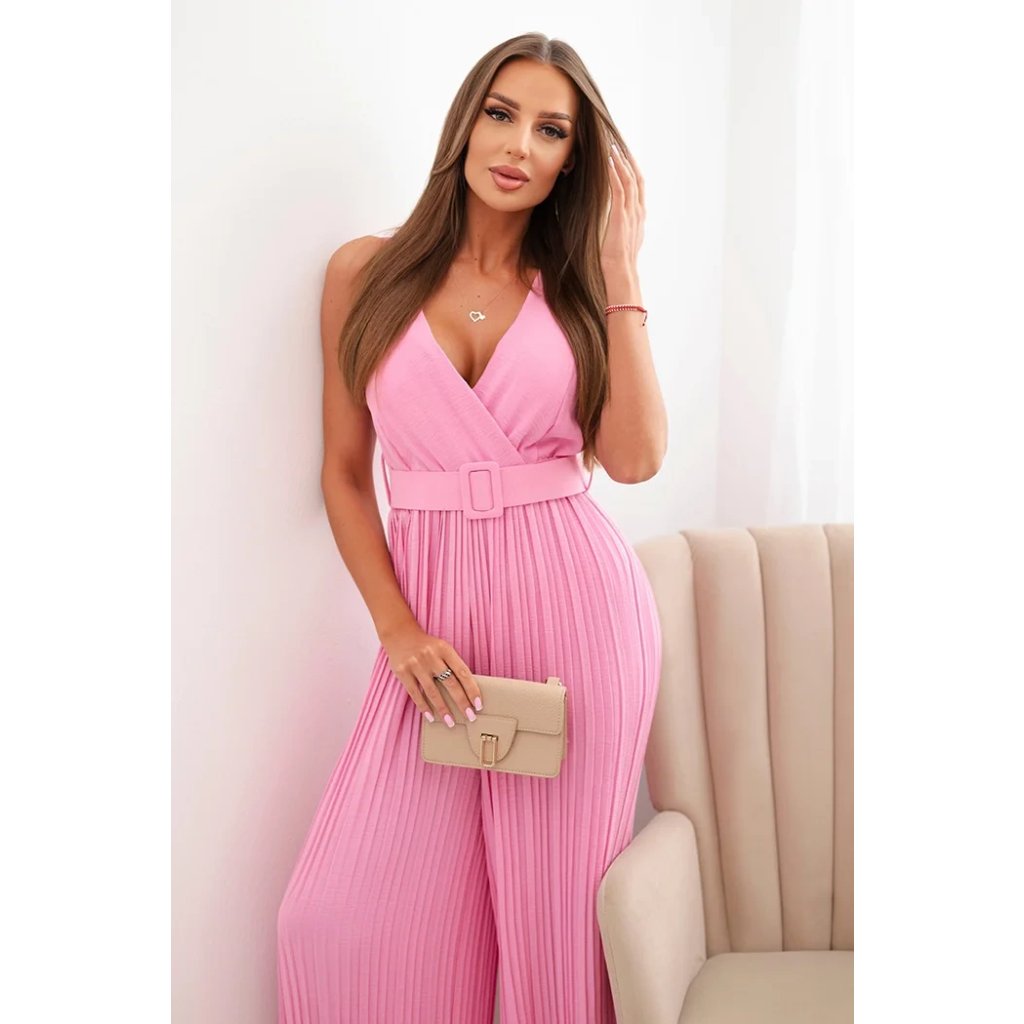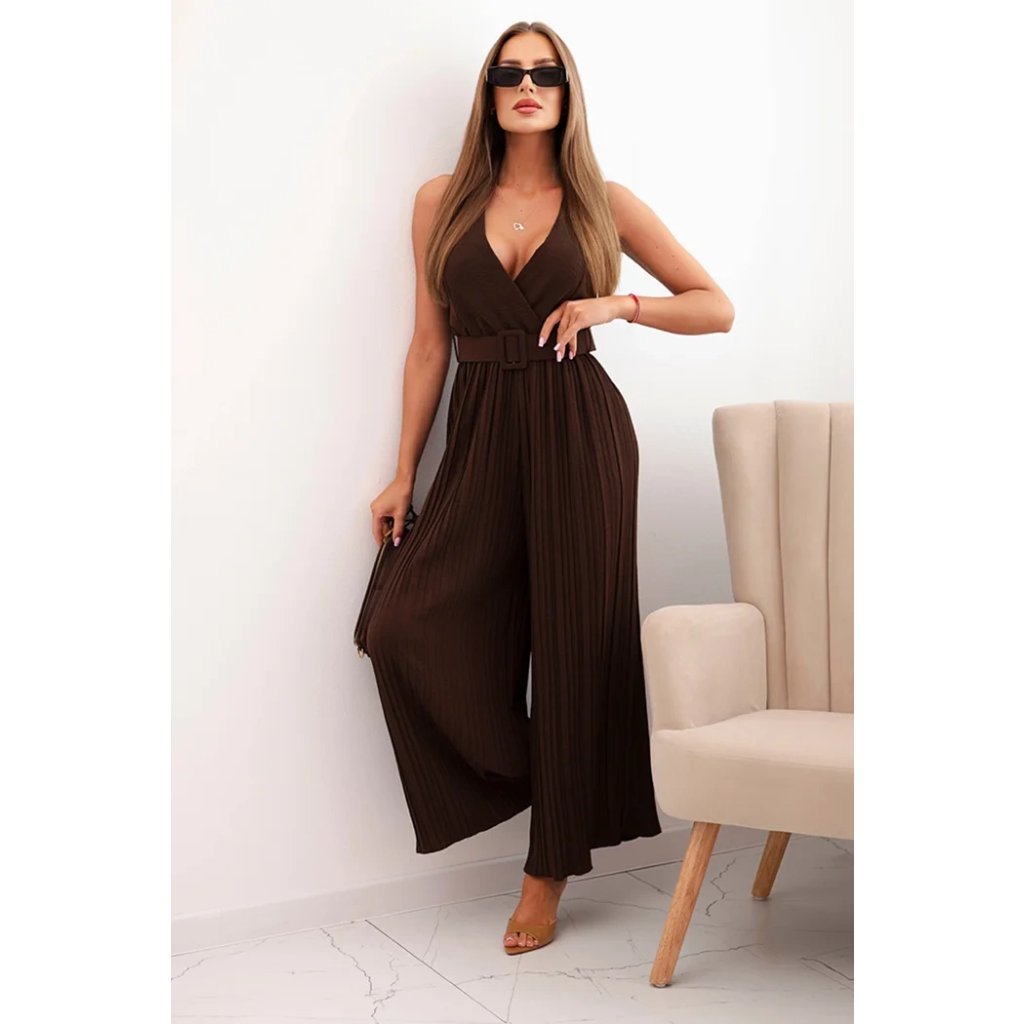 Viskózová riasená kombinéza s opaskom je elegantný a pohodlný výber pre rôzne príležitosti. Oblek vyrobený z ľahkého viskózového materiálu zaisťuje priedušnosť a pohodlie aj v teplých dňoch. Jeho plisovaný strih mu dodáva ľahkosť a jemnú sofistikovanosť, zatiaľ čo doplnkový opasok zdôrazňuje pás a dodáva postave proporcie. Táto kombinéza je ideálna ako na obchodné rokovania, tak na večery a je pohodlnou a elegantnou voľbou pre každú ženu, ktorá si cení štýl a pohodlie. Veľkosť je univerzálna a vyhovuje ľuďom vo veľkostiach S, M a L.