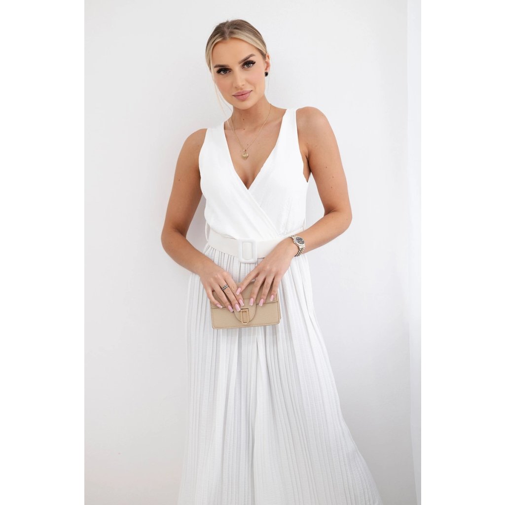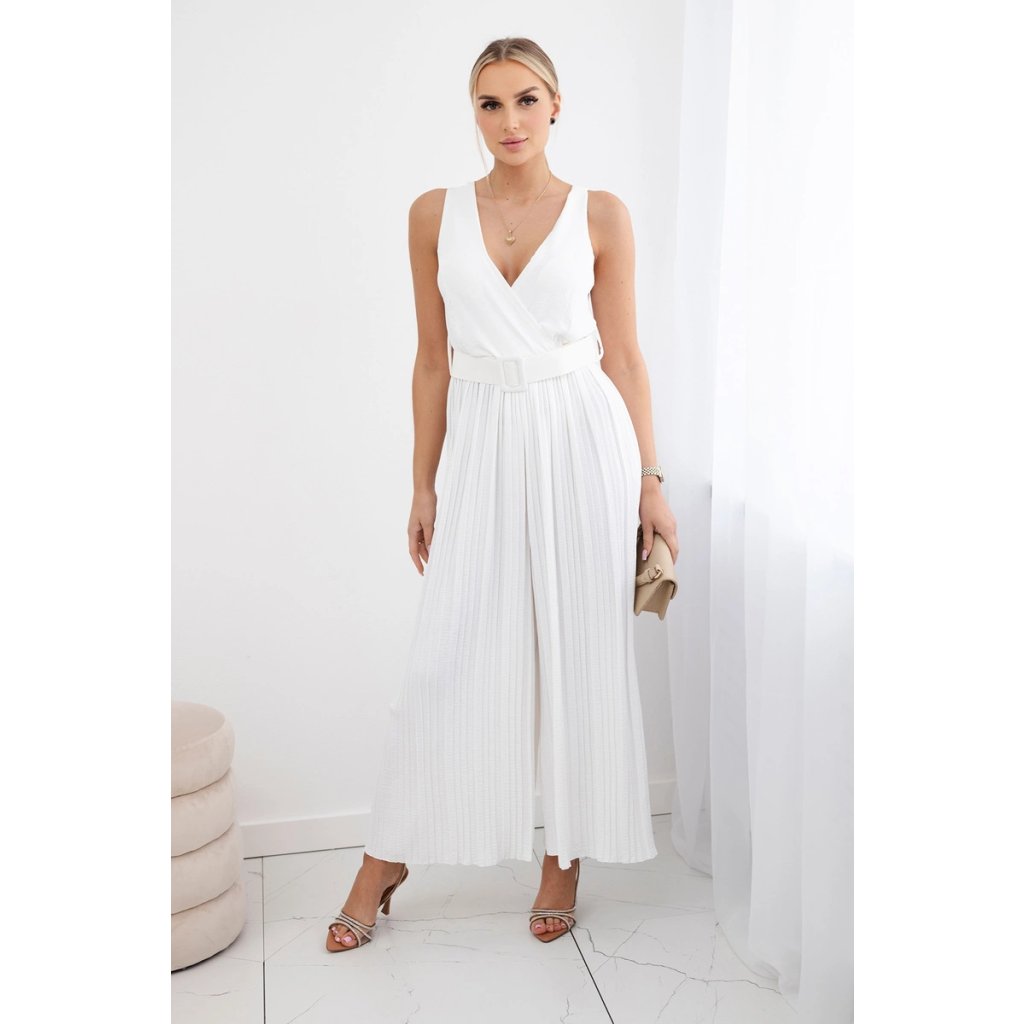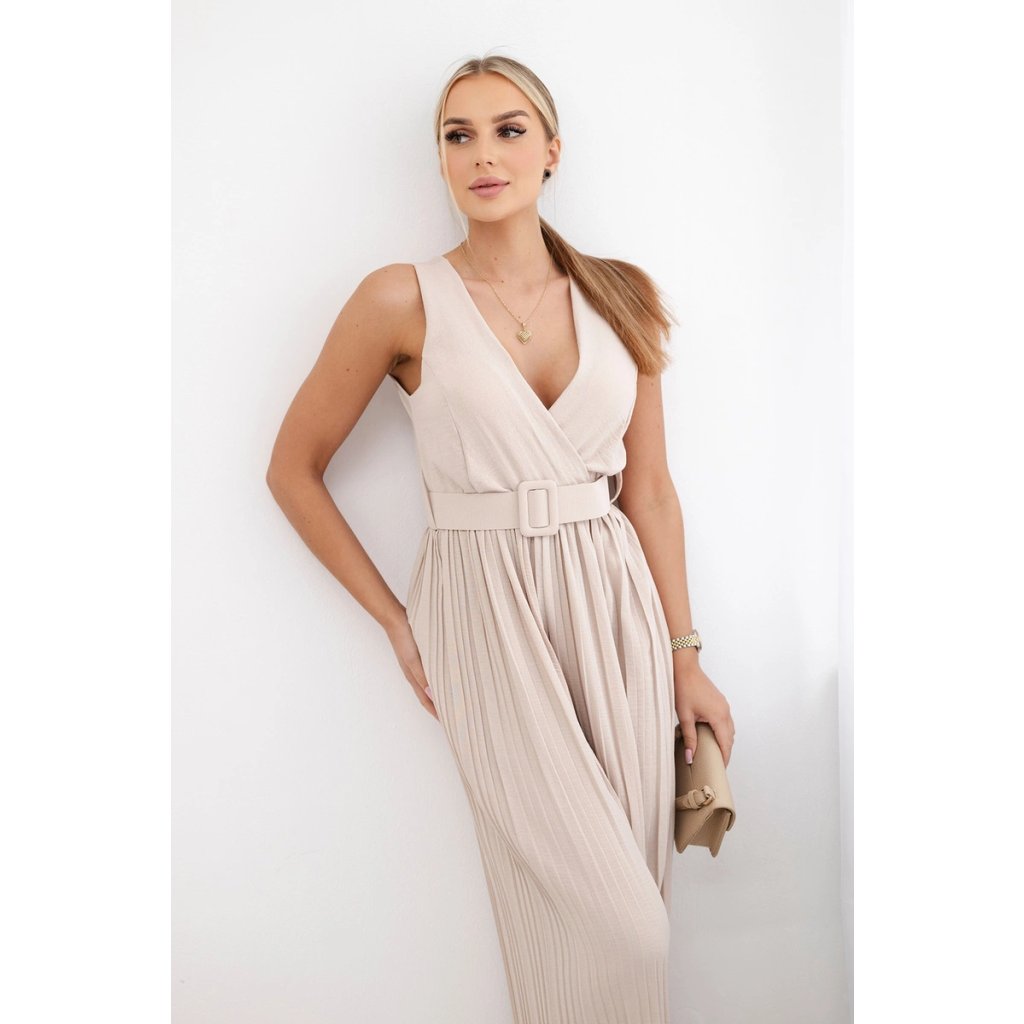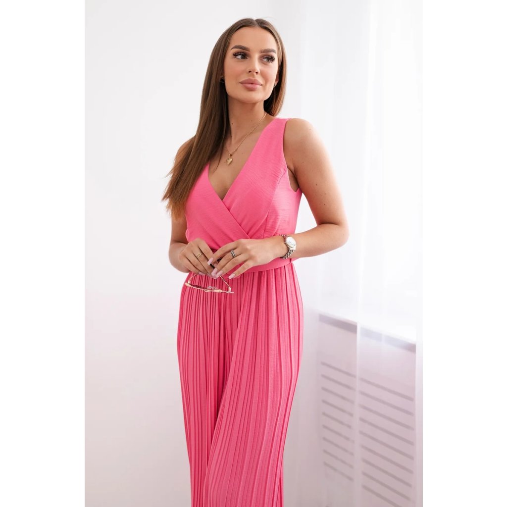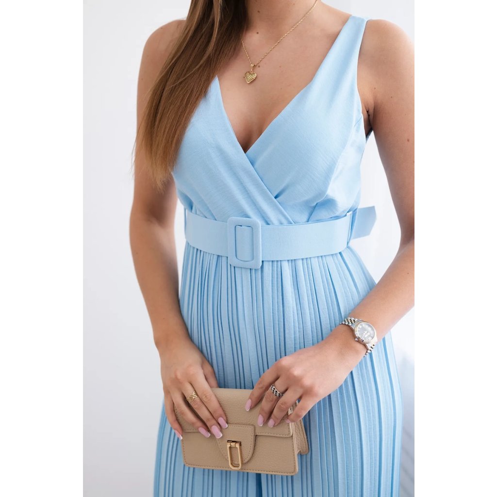 Viskózová riasená kombinéza s opaskom je elegantný a pohodlný výber pre rôzne príležitosti. Oblek vyrobený z ľahkého viskózového materiálu zaisťuje priedušnosť a pohodlie aj v teplých dňoch. Jeho plisovaný strih mu dodáva ľahkosť a jemnú sofistikovanosť, zatiaľ čo doplnkový opasok zdôrazňuje pás a dodáva postave proporcie. Táto kombinéza je ideálna ako na obchodné rokovania, tak na večery a je pohodlnou a elegantnou voľbou pre každú ženu, ktorá si cení štýl a pohodlie. Veľkosť je univerzálna a vyhovuje ľuďom vo veľkostiach S, M a L.