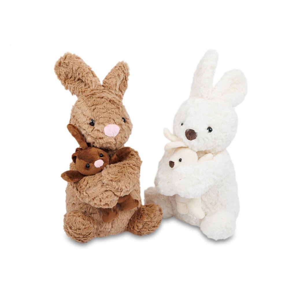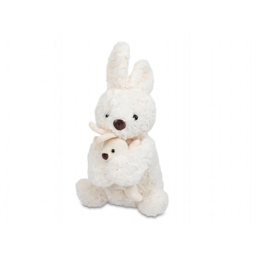 Roztomilý plyšový zajačik s mláďatkom v náručí v krémovej farbe. Prinesiete do svojho domova kúsok roztomilosti s touto hebkou zajačou rodinkou. Ideálne na maznanie a ako dekorácia do detskej izby.