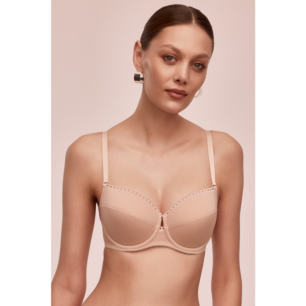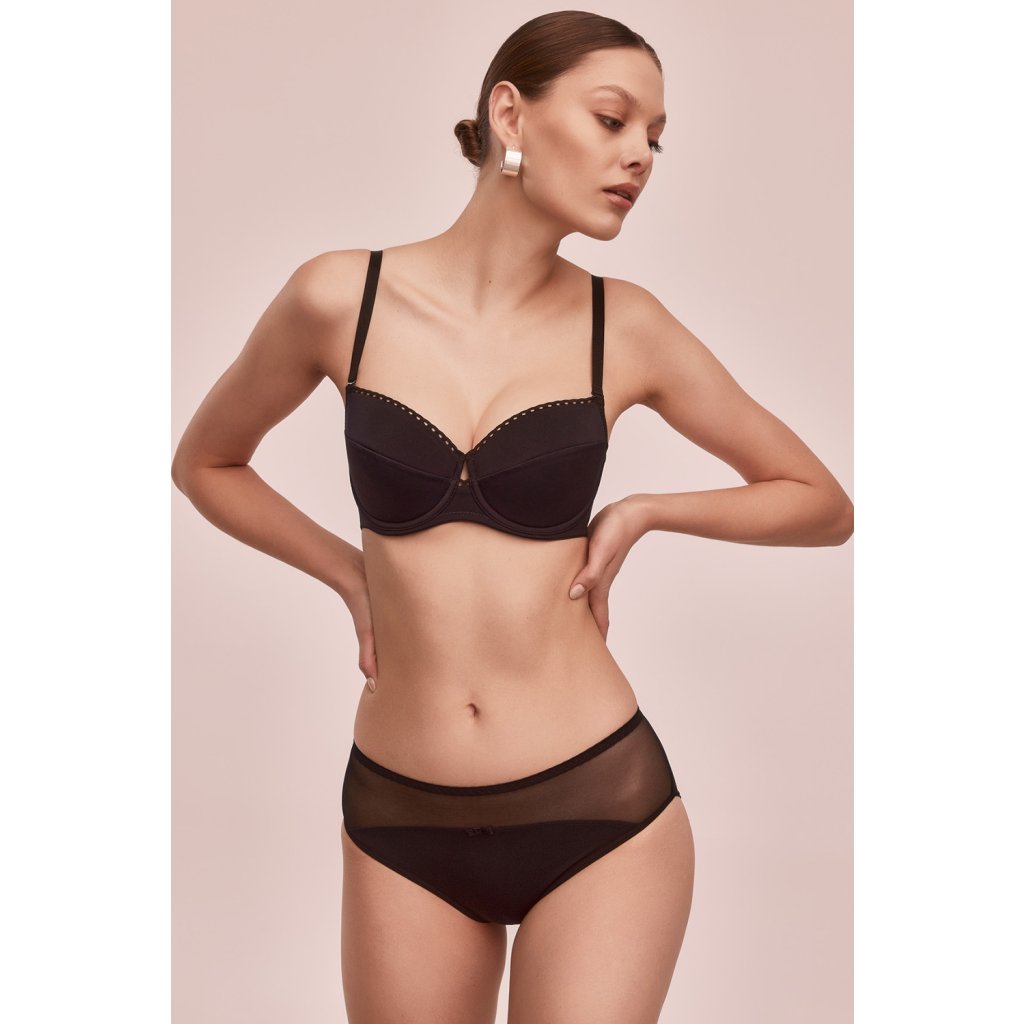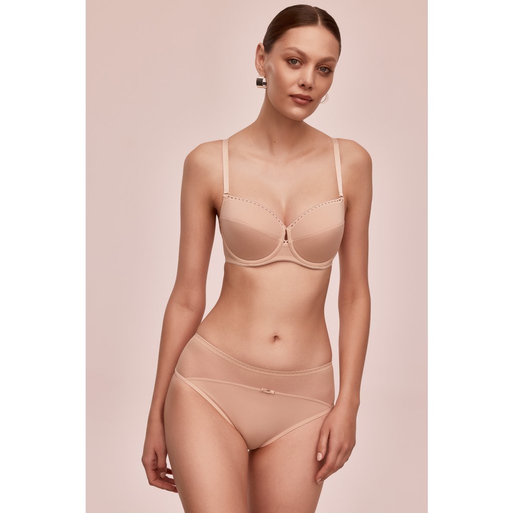 Luxusná polovystužená podprsenka s kosticami z príjemného mikrovlákna. Vnútorná strana košíčkov je vystužená mäkkou penou a podšitá bavlneným úpletom. Popruhy sú pevné, elastické, ľahko nastaviteľné a odnímateľné.Dodatočné parametre