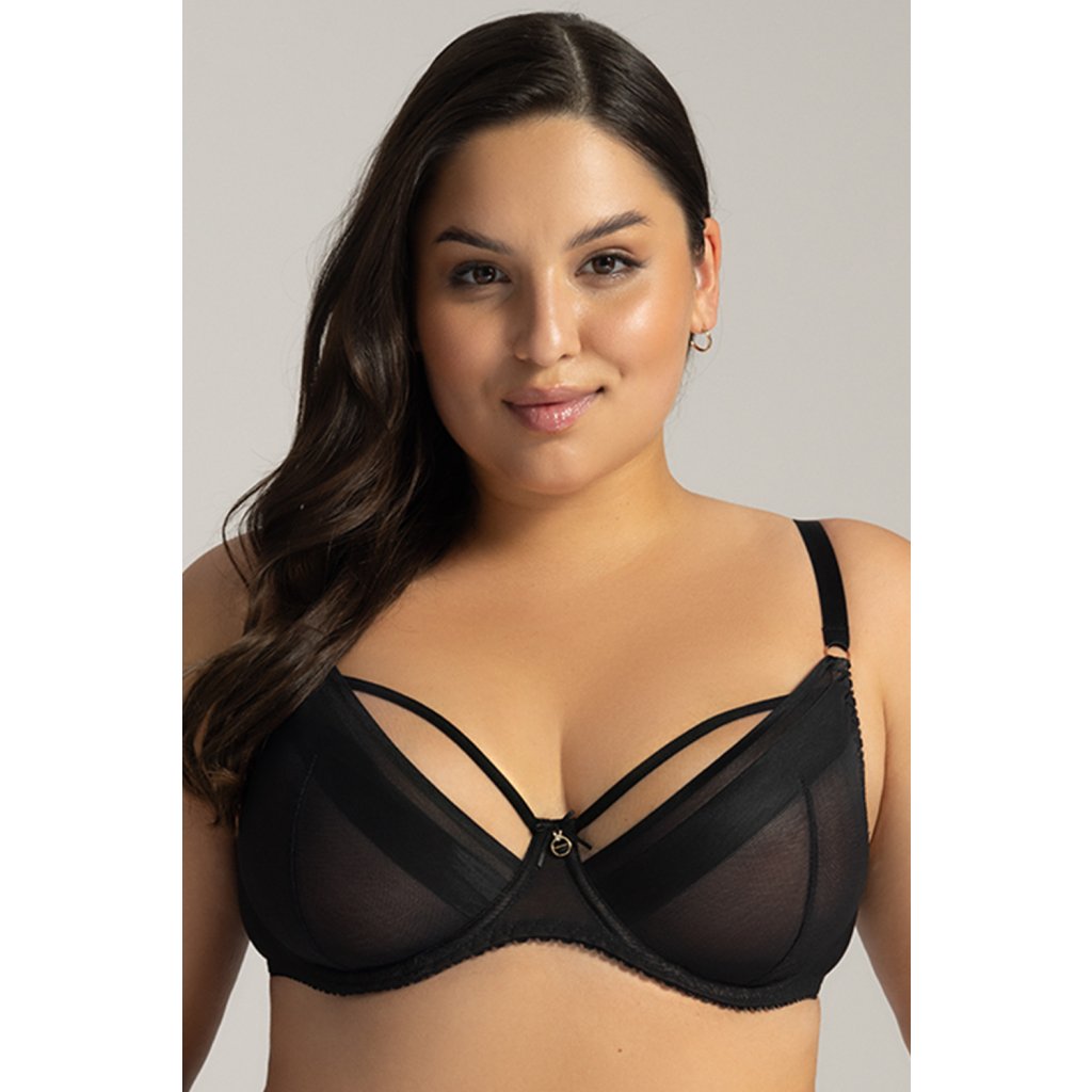 Nevystužená podprsenka v čiernej farbe.- šálky z dvojitej sieťoviny