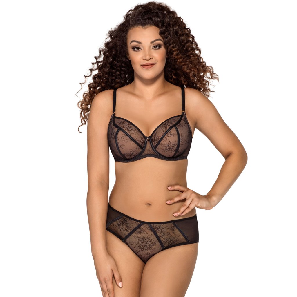 Klasická elegancia v ušľachtilej čiernej farbe je podstatou značky Sersei. Podprsenka s plnými košíčkami dokonale stiahne prsia a dodá im požadovaný oblý tvar. Vzorované plátno pokrývajúce košíčky a chrbát dopĺňajú saténové pásy pokrývajúce rozparky košíčkov a tunely. Béžová pena vykúkajúca spod plátna a zlaté krúžky a regulátory dopĺňajú a rozjasňujú pôsobivý celok.K súprave odporúčame nohavičky 1995 alebo podprsenky 1995/B.