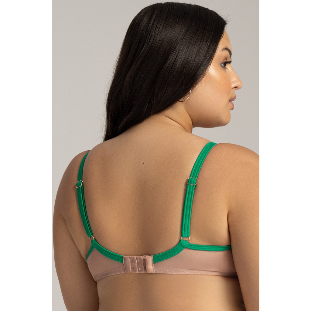 Štýlová nevystužená podprsenka.košíčky zo sieťoviny potiahnuté čipkou
