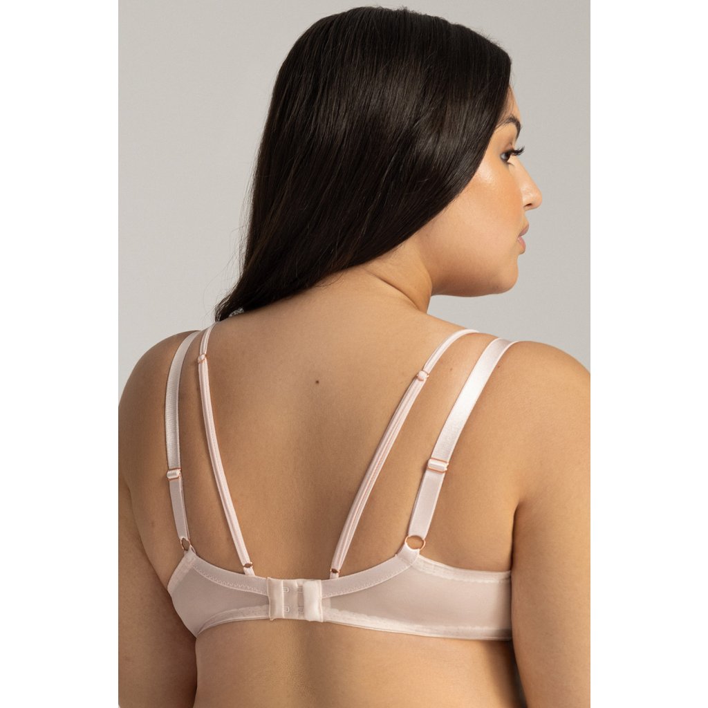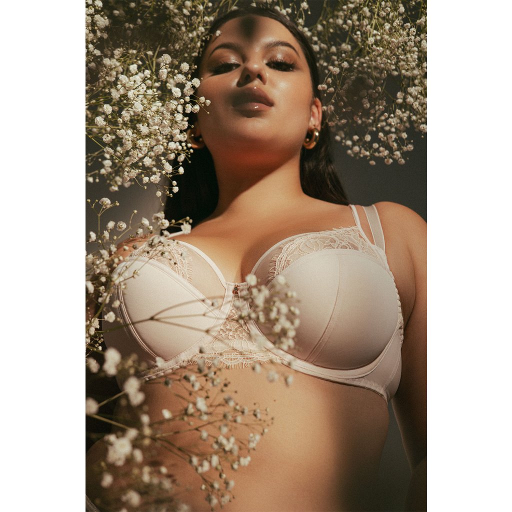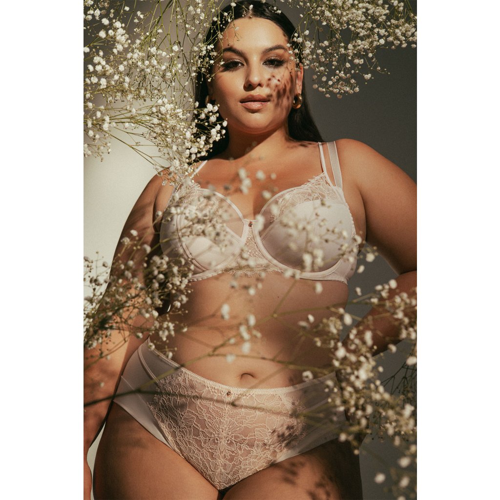 Krásna polystužená podprsenka pre ženy s väčšími prsiami.horná časť košíčka je vyrobená zo sieťoviny potiahnuté ozdobnou čipkou
