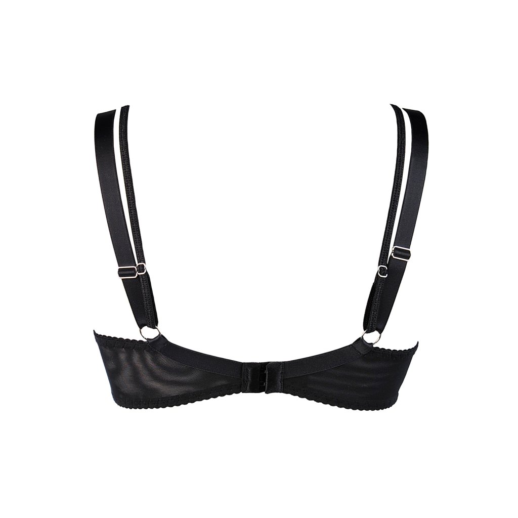 Sexi push-up podprsenka v čiernej a modrej farbe.- košíčky a stred pokryté lesklou výšivkou s kvetinovým vzorom