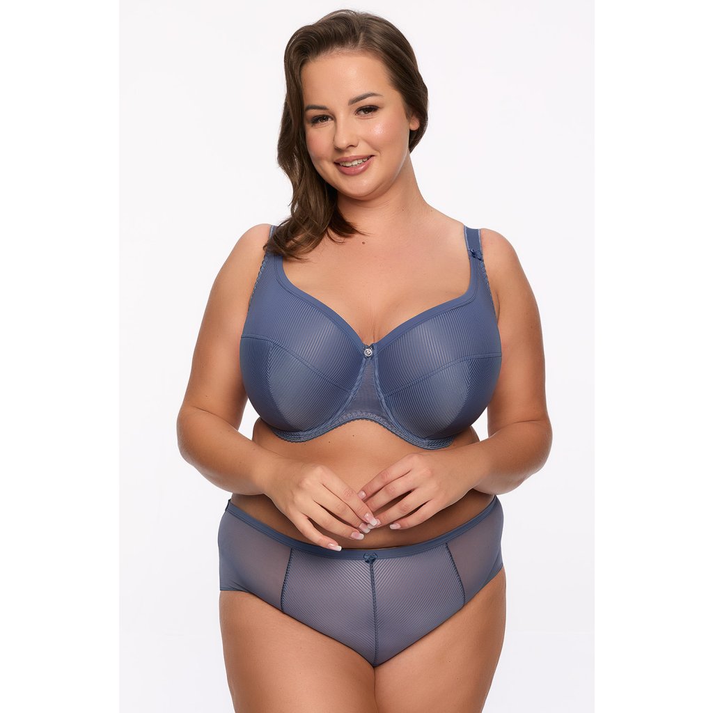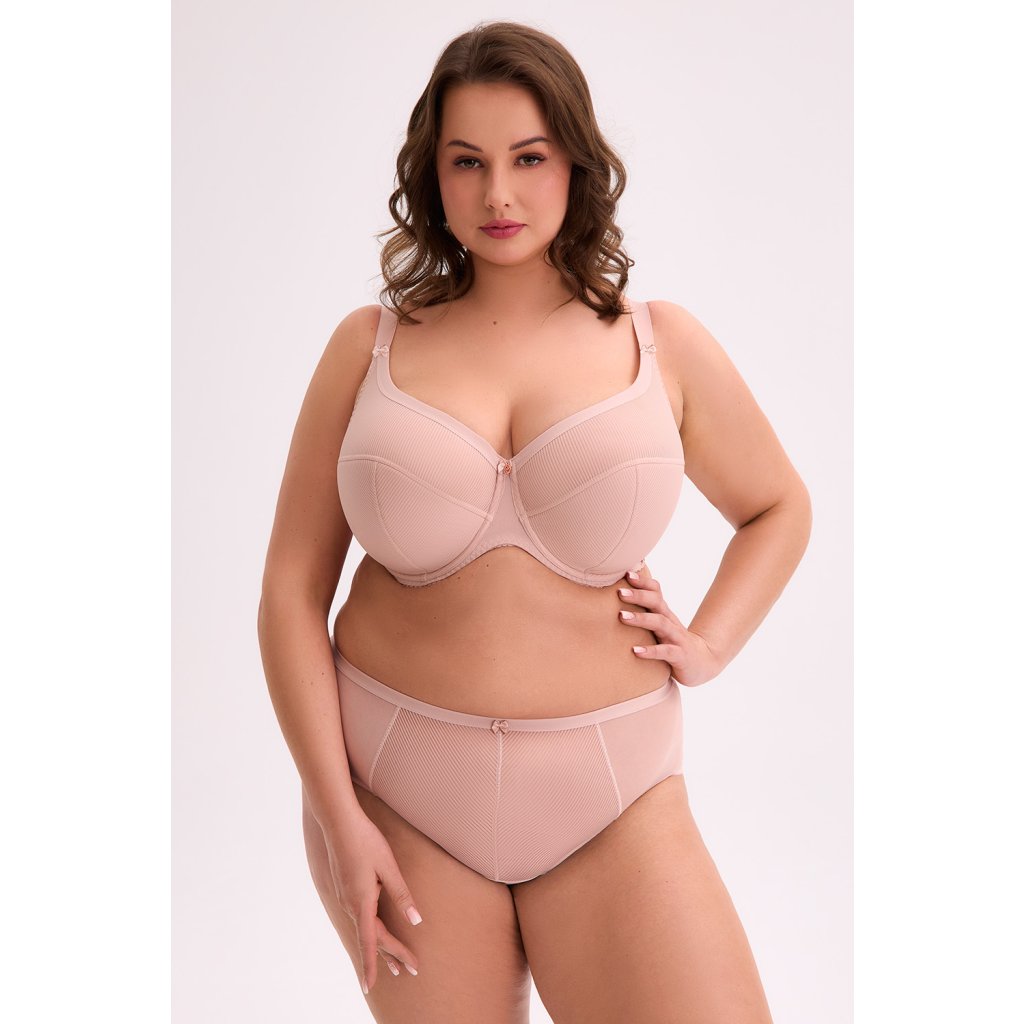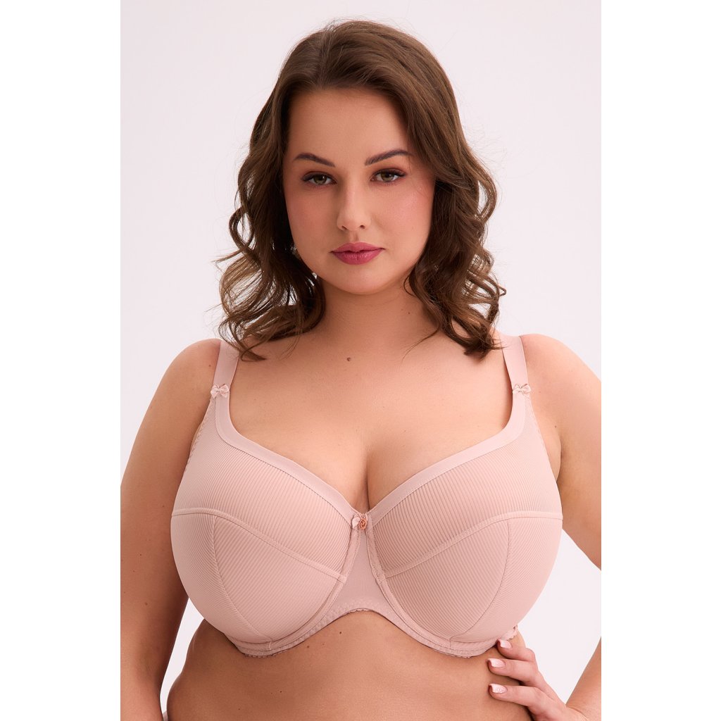 Polovystužená podprsenka pre ženy typu "semi soft".Podprsenka je vyrobená z rebrovaného mikrovlákna. Horná línia modelu je lemovaná elastickým lemom. Košíčky sú z vnútornej strany do polovice potiahnuté bavlnou. Boky modelu sú vyrobené z elastickej tkaniny. Popruhy sa nedajú odopnúť.