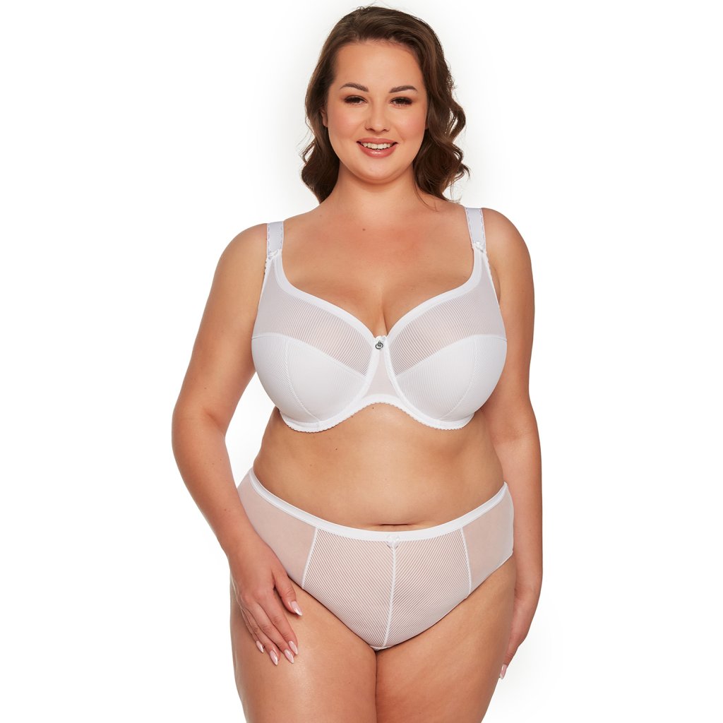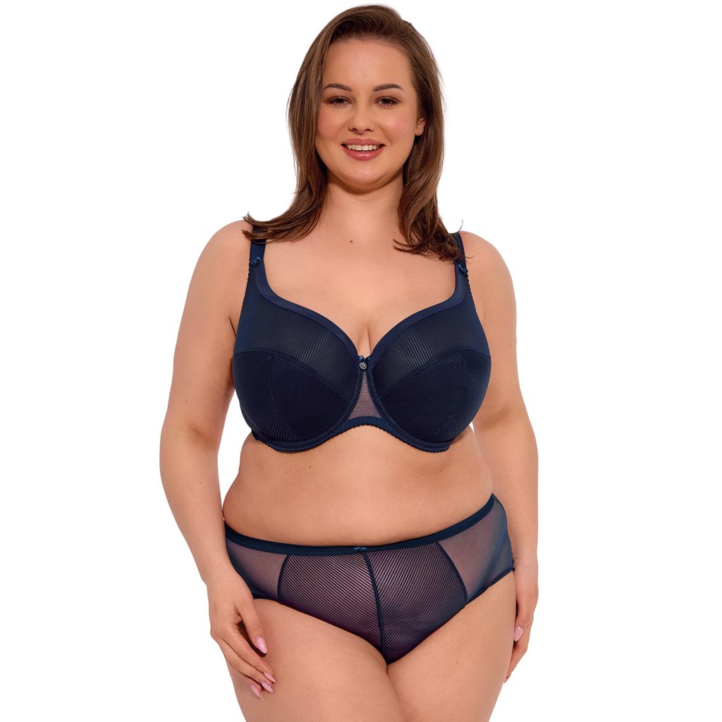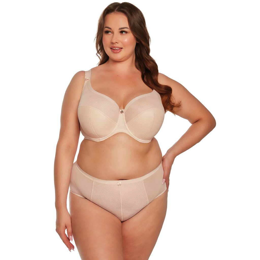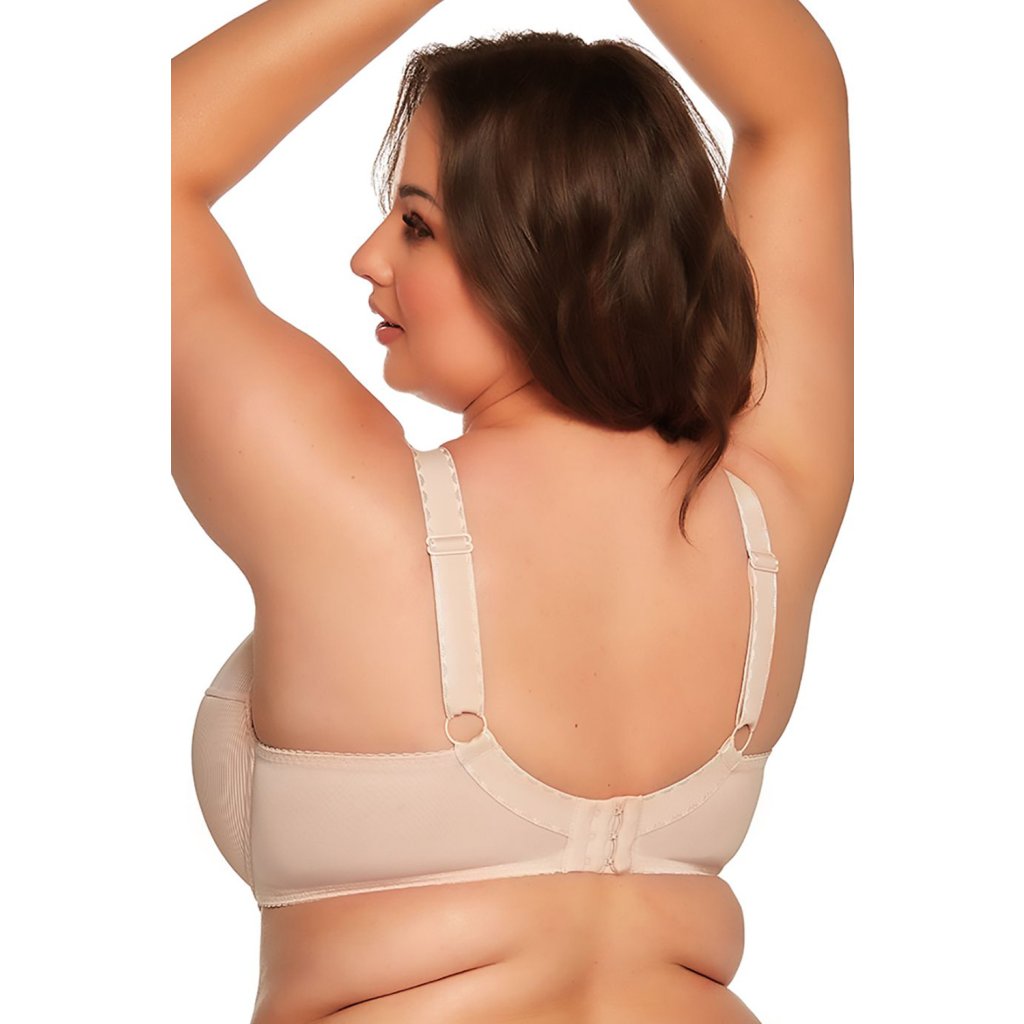 Polovystužená podprsenka pre ženy typu "semi soft".Podprsenka je vyrobená z rebrovaného mikrovlákna. Horná línia modelu je lemovaná elastickým lemom. Košíčky sú z vnútornej strany do polovice potiahnuté bavlnou. Boky modelu sú vyrobené z elastickej tkaniny. Popruhy sa nedajú odopnúť.