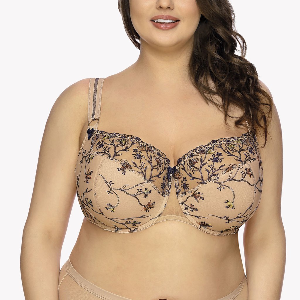 Polovystužená polomäkká podprsenka:- polovystužené košíčky z elastickej sieťoviny- zdobené lesklou výšivkou- košíčky podšité bavlnou- nastaviteľné a neodnímateľné ramienka- zapínanie na dva alebo tri háčiky s trojstupňovým nastavením- model dobre zbiera a podporuje poprsie Konštrukcia SS2 Zloženie: 40 % polyester, 37 % polyamid, 6 % elastan, 4 % bavlna, 3 % polyuretánDodatočné parametre