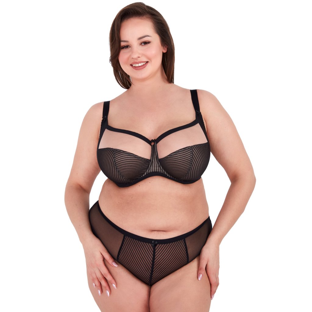 Mäkká podprsenka s kosticami a bočným panelom, ktorý dokonale stiahne a krásne vytvaruje poprsie. Košíčky z vystuženej tkaniny - nepriehľadné, vrchná časť zakončená čiernym plochým pásom. Lem je vyrobený z hladkej tkaniny s lycrou. Ramienka sú nastaviteľné a ich šírka je prispôsobená veľkosti poprsia, takže netlačia a zvyšujú pohodlie podprsenky CLARA.Zloženie: 80% polyamid, 20% elastan.
