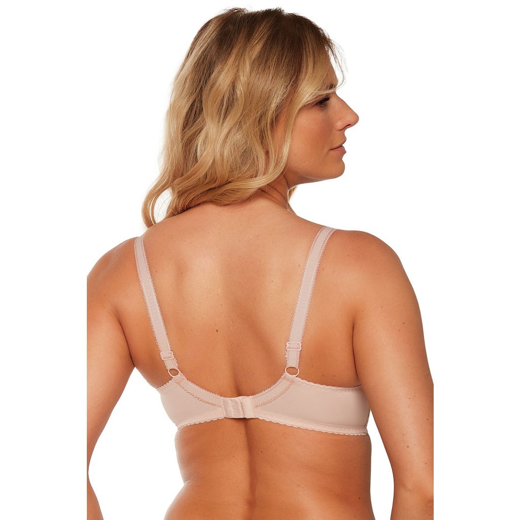 Zmyselná polovystužená podprsenka. - vrchná časť košíčkov je vyrobená zo sieťoviny - košíčky a mostík sú pokryté krásnou čipkou - medzi košíčkami je mašlička s príveskom - drôtiky podporujú a tvarujú prsia - zvislé bočné kostice - zadná časť je vyrobená z hladkého úpletu - nastaviteľné, neodnímateľné ramienka, rôzne šírky v závislosti od veľkosti - ozdobné mašle na spojnici ramienok a košíčkov - zapínanie na háčik a očko na chrbte Zloženie: 57 % polyamid, 18 % bavlna, 10 % polyester, 10 % elastan, 5 % polyuretán.
