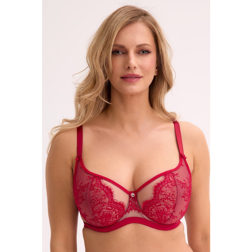 Dámska nevycpaná podprsenka.- šálky z ružovej sieťoviny
