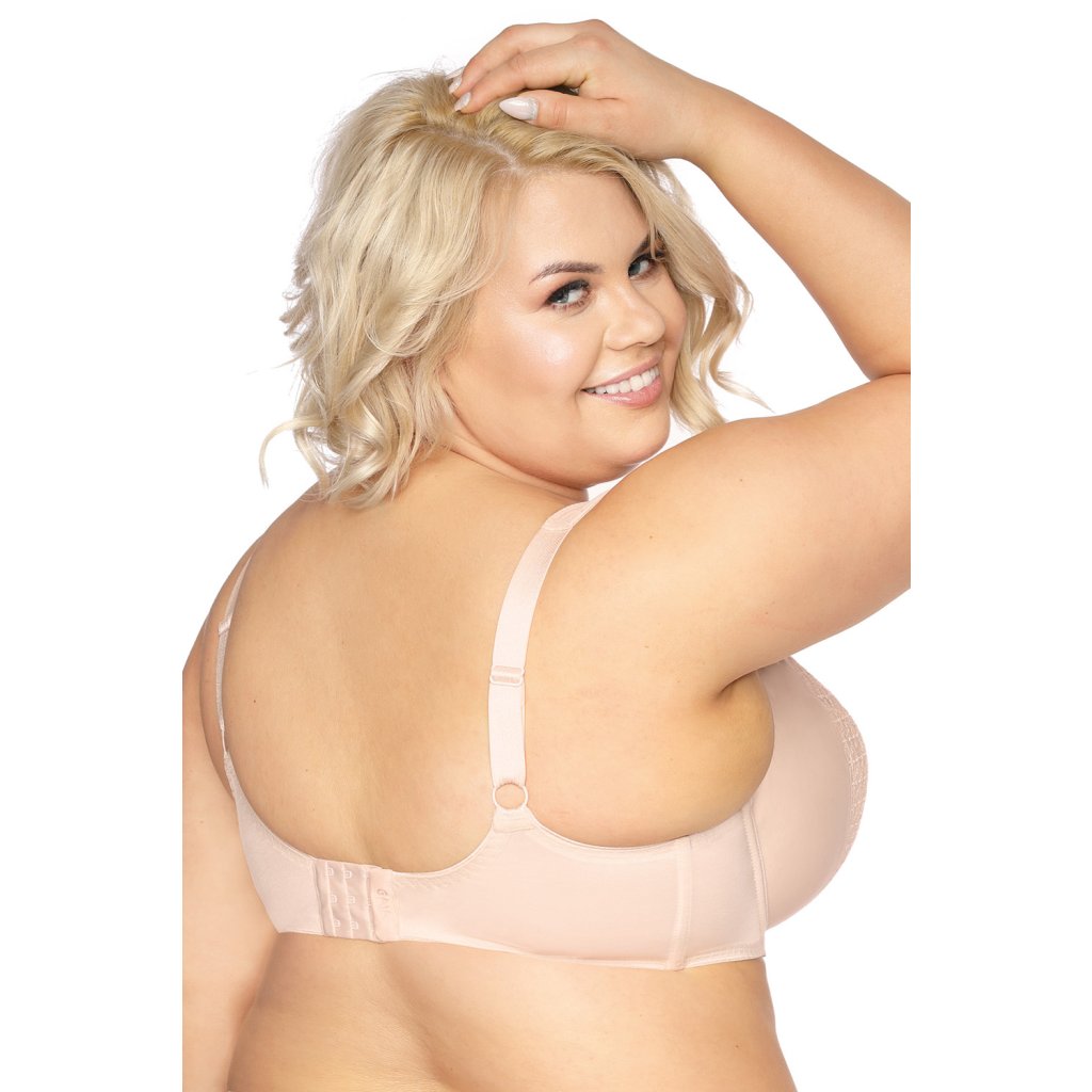 Elegantná dámska podprsenka v klasickej farbe.Košíčky modelu sú pokryté jemnou výšivkou. Strany košíčkov a mostík sú vyrobené z hladkého a stabilného materiálu. Zadná časť podprsenky je vyrobená z elastickej lycry. Model nemá bočné kostice. Popruhy, ktoré sú zdobené mašľami, sa dajú nastaviť, ale nedajú sa odopnúť. Šírka ramienok je prispôsobená veľkosti a rozmerom podprsenky. Model sa zapína pomocou dvojradových háčikov s tromi možnosťami nastavenia dĺžky obvodu. Medzi šálkami sa nachádza pôvabná ozdobná mašľa.