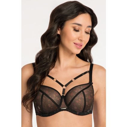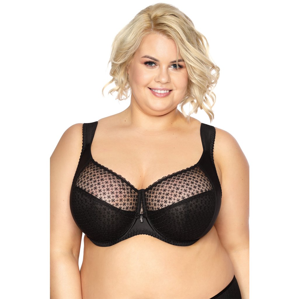 Elegantná dámska podprsenka v klasickej farbe.Košíčky modelu sú pokryté jemnou výšivkou. Strany košíčkov a mostík sú vyrobené z hladkého a stabilného materiálu. Zadná časť podprsenky je vyrobená z elastickej lycry. Model nemá bočné kostice. Popruhy, ktoré sú zdobené mašľami, sa dajú nastaviť, ale nedajú sa odopnúť. Šírka ramienok je prispôsobená veľkosti a rozmerom podprsenky. Model sa zapína pomocou dvojradových háčikov s tromi možnosťami nastavenia dĺžky obvodu. Medzi šálkami sa nachádza pôvabná ozdobná mašľa.