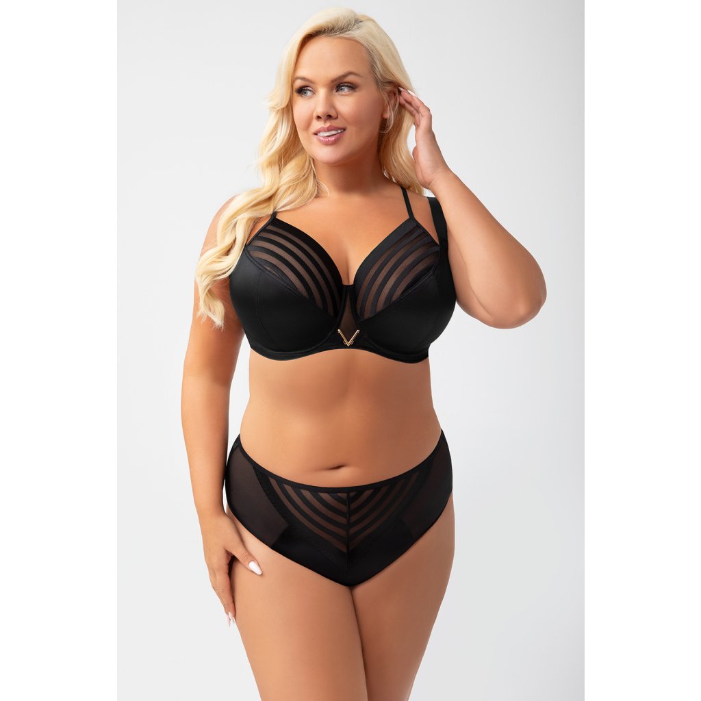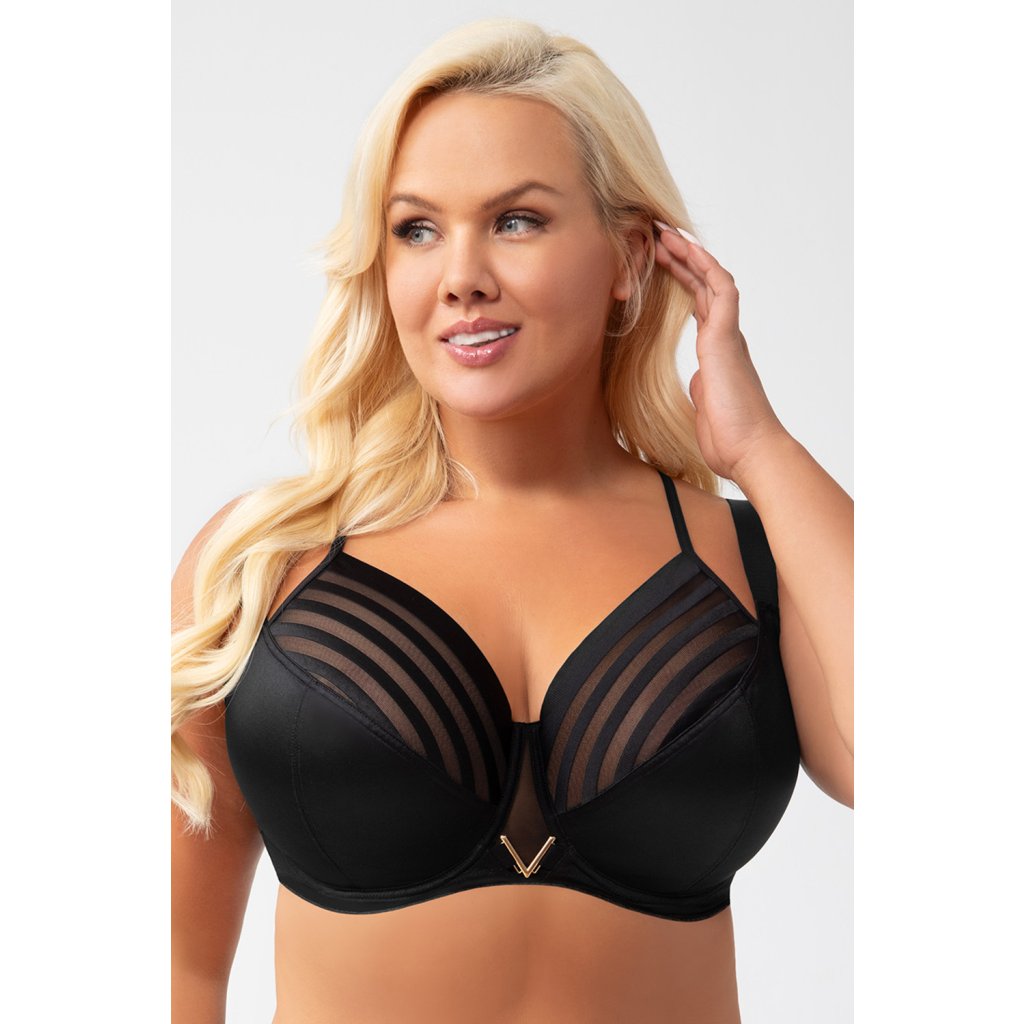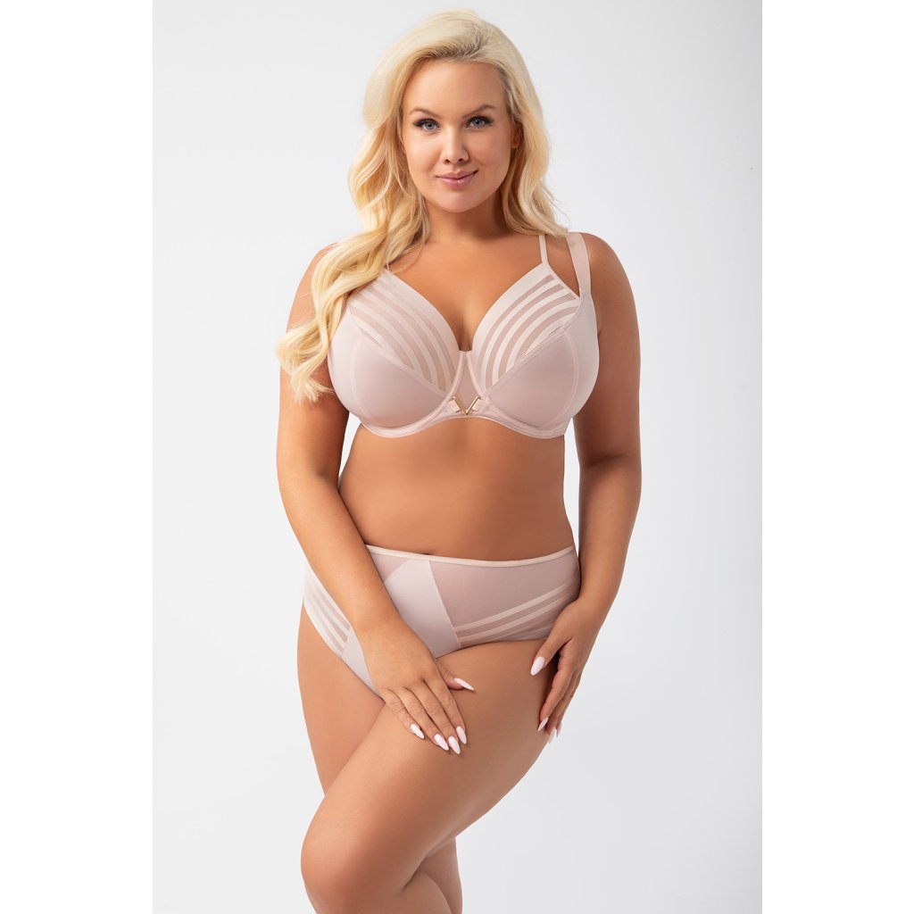 Mäkká podprsenka s kosticami:- vyrobená z lesklej simplexovej tkaniny a sieťoviny s motívom pruhov- dvojité, nastaviteľné a neodnímateľné ramienka- elastická tkanina a priehľadný tyl, kostice- patrí ženám so strednými a veľkými prsiami- zdvíha a dokonale zbiera prsia zo stránZloženie: 90% polyamid, 7% elastan, 3% polyester