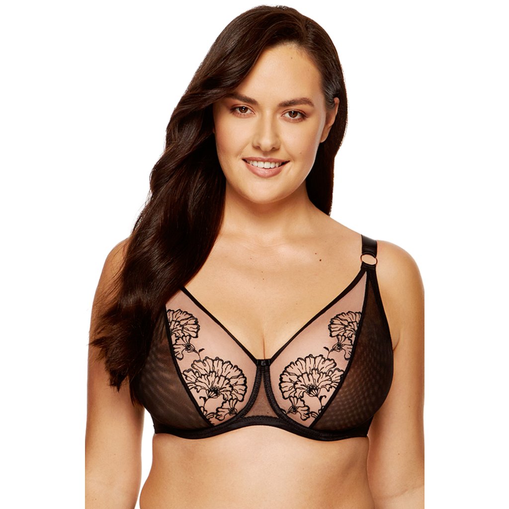 Elegantná nevystužená podprsenka- priehľadné, elastické košíčky z dvojitej sieťoviny a výšivky