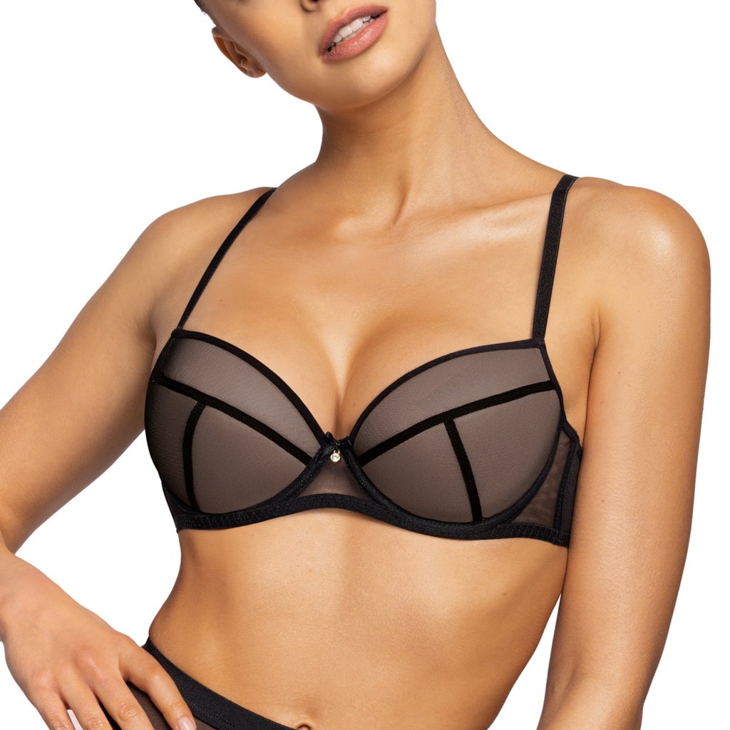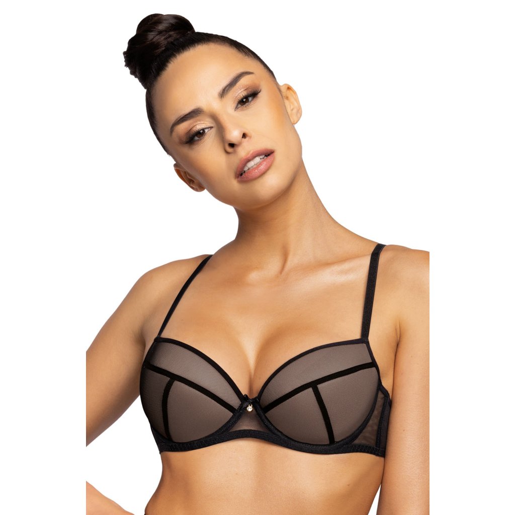 Elegantná a zmyselná push-up podprsenka:- v čiernej farbe- vyberateľné push-up vypchávky- odnímateľné a nastaviteľné ramienka- čierna sieťovina po obvode- zapínanie na háčik a očko s trojcestným nastavenímZloženie: 51% polyamid, 24% bavlna, 18% polyuretán, 7% elastanDodatočné parametre