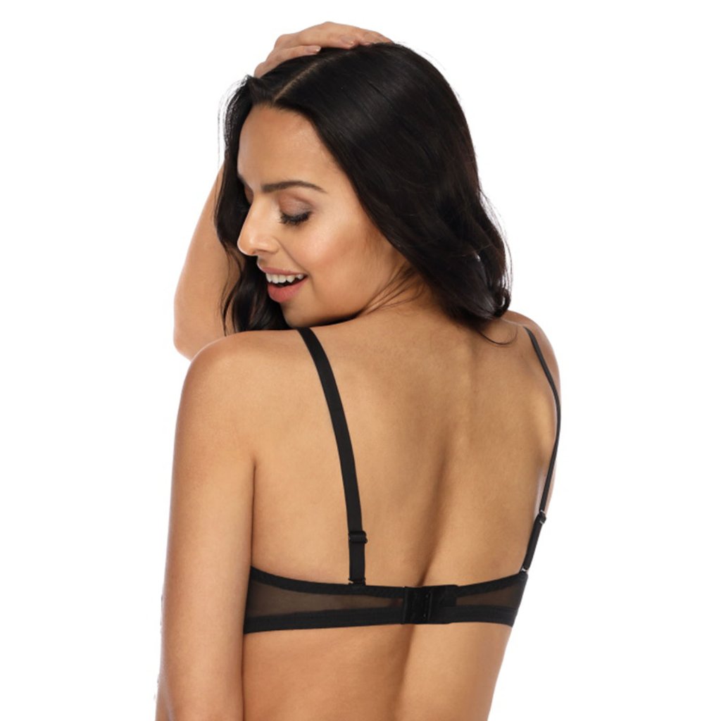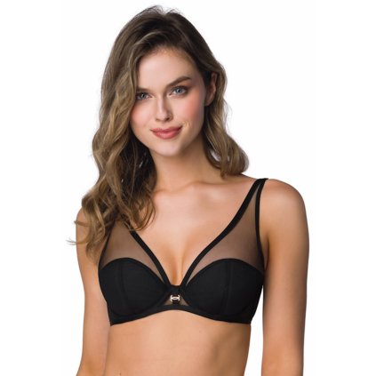 Elegantná push-up podprsenka v čiernej farbe.- košíčky a mostík sú vyrobené z béžového úpletu potiahnutého priehľadným elastickým tylom.