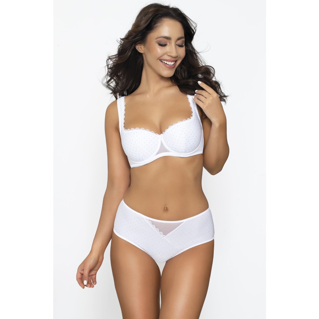 Sexi a elegantná push-up podprsenka, ktorá dokonale zvýrazní poprsie a dodá mu plný a zvodný tvar. Je vyrobená z jemného materiálu zdobeného jemnými lesklými bodkami, ktoré jej dodávajú jedinečný šarm. Hladké boky a čipka na košíčkoch a ramienkach zdôrazňujú ženský štýl a dodávajú celku mimoriadne elegantný vzhľad. Konštrukcia podprsenky poskytuje dokonalú oporu a zaručuje pohodlie a istotu počas celého dňa.Zloženie: bavlna 5%, elastan 17%, polyamid 78%