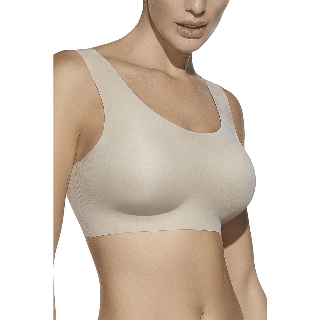 Selene Olivia je bezšvová podprsenka, ktorá sa jemne prispôsobí vašej postave a poskytuje hladký pocit pod oblečením. Elastická tkanina sa prispôsobí vášmu telu a poskytuje pohodlný pocit po celý deň. Košíčky majú vrecká na vypchávky, čo vám umožní prispôsobiť úroveň podpory vašim potrebám. Široké, neodnímateľné ramienka nie sú nastaviteľné a pohodlne rozkladajú váhu. Široký, stabilný pás pod prsiami poskytuje ľahkú oporu a pohodlie. Zadná strana je hladká a nezapínateľná, čo zaisťuje pohodlné nosenie a žiadne zovretie. Hladký povrch uľahčuje nosenie pod priliehavým oblečením. Tento model je ideálny na každodenné nosenie, doma alebo ako pohodlný top pod svetre a košele. Mäkká tkanina zvyšuje pohodlie. Je to praktická voľba pre tých, ktorí si cenia minimalizmus a pohodlie bez kompromisov.Bezšvová, mäkká braletka na každodenné nosenie
