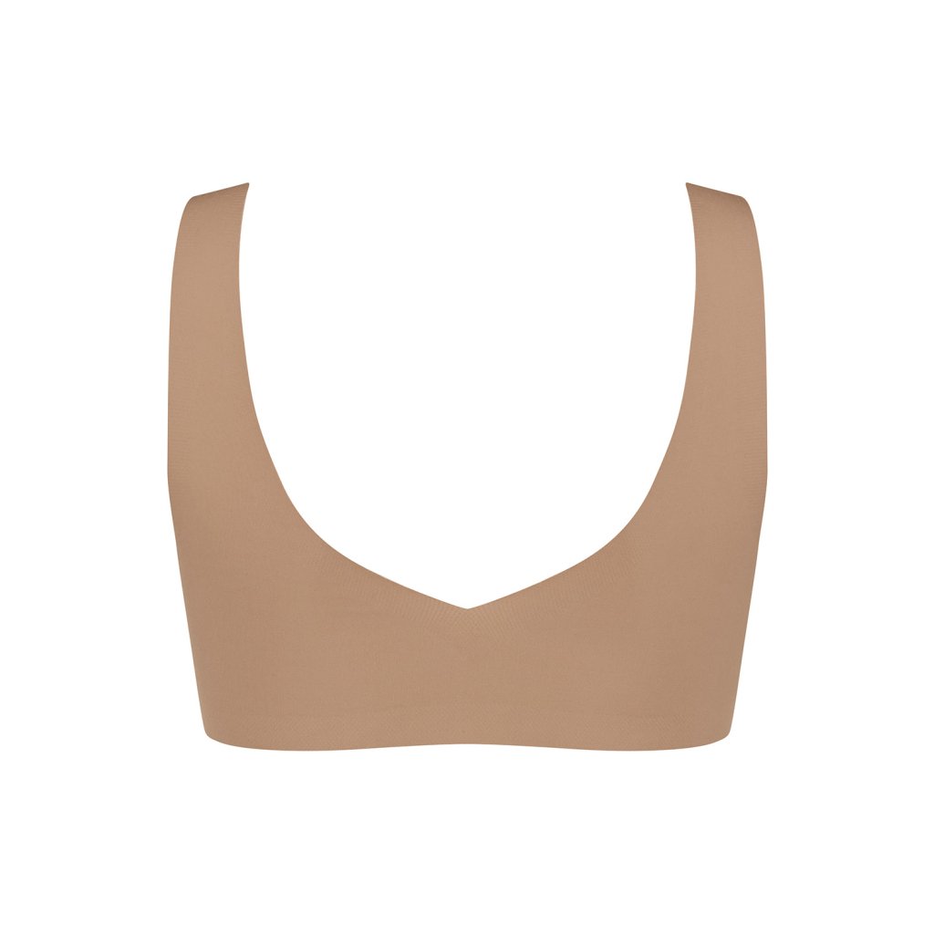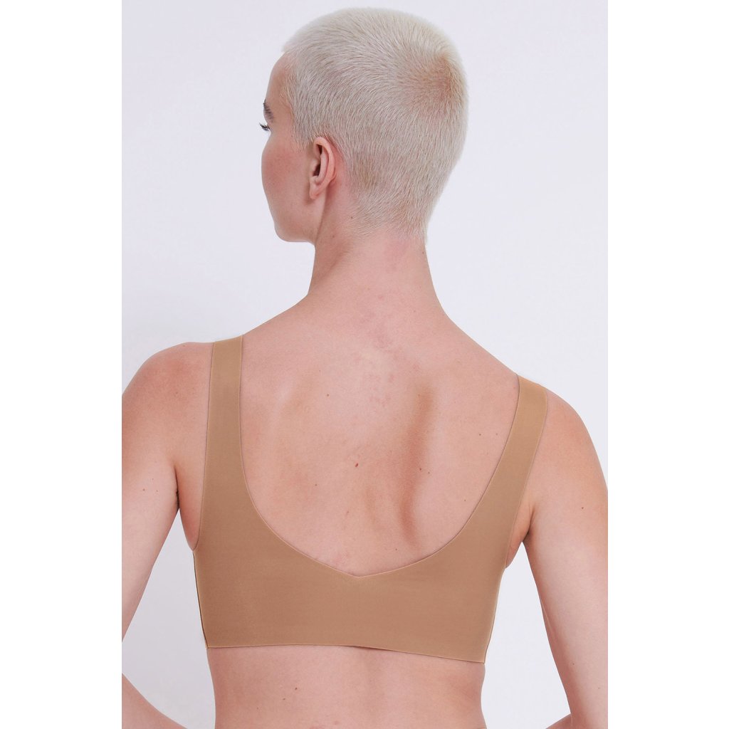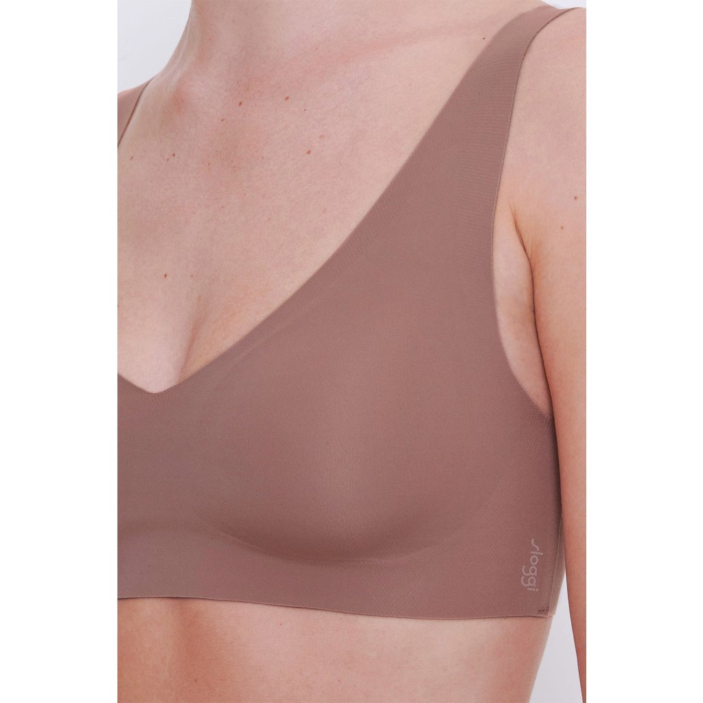Bezšvová podprsenka -Výstrih v tvare V - mäkké košíčky -vyberateľné vložky - široké ramienka –neodopínateľné, nenastaviteľné - stredná úroveň výdrže - jemný, priedušný recyklovaný polyamid s certifikátom GRS - mäkký povrch zaisťujúci mäkkosť na dotyk - dvojitá vrstva látky - model bez kostíc, úplne neviditeľný pod oblečením vďaka inovatívnej technológii lepenia - Technológia Activated Silk™ odvádza vlhkosť a zaisťuje pohodlie a sucho - malá potlač sloggi na boku Zloženie: 76% polyamid, 24% elastan.