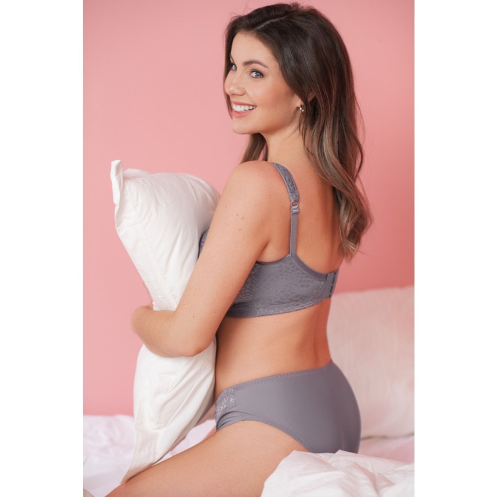 Nevyztužená podprsenka bez kostice z veľmi pohodlného žakáru. Podprsenka má široké, mäkko vystužené ramienka, ktoré odľahčujú krk a poskytujú pocit pohodlia. Bočné časti košíčkov fixujú prsia v strede, čím opticky zoštíhľujú celú postavu.