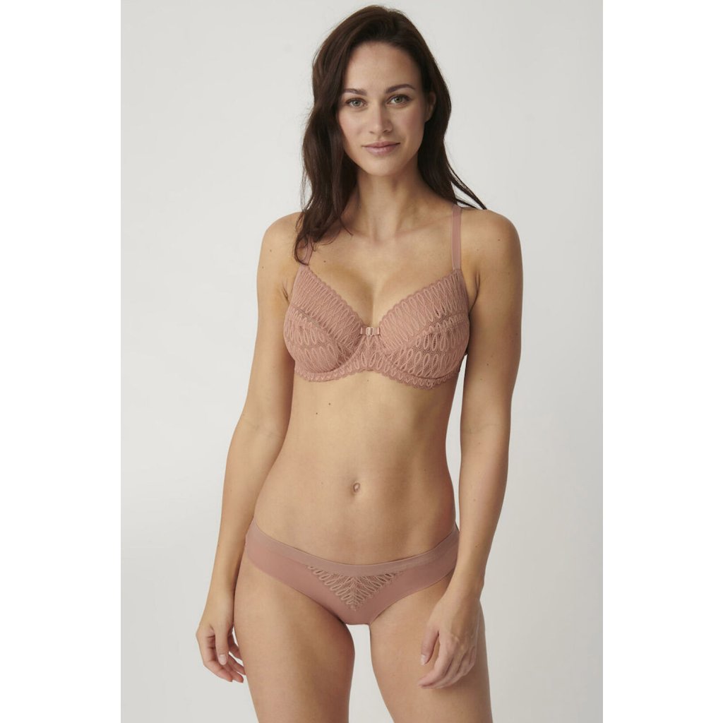 Dámska mäkká podprsenka.- výnimočne mäkká a pohodlná tkanina- košíčky a mostík pokryté zvodnou čipkou- mašlička medzi košíčkami- zadná časť z hladkej pleteniny, vystužená dodatočnou sieťovinou- nastaviteľné, neodnímateľné ramienka- zapínanie na háčik a očko na chrbteNa doplnenie súpravy odporúčame nohavičky Aura Spotlight.Zloženie: 66% polyamid, 17% polyester, 17% elastan.