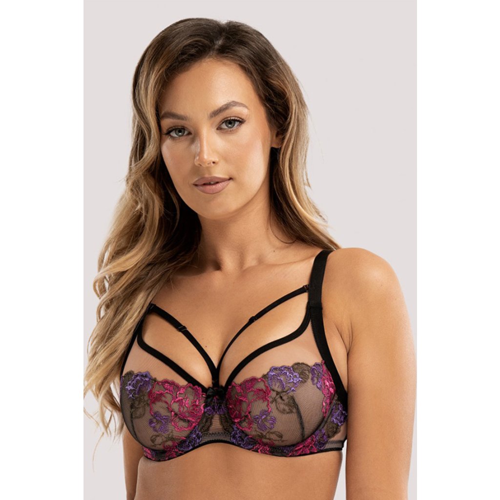 Jemná sieťovina a výšivka zvýrazňujú poprsie