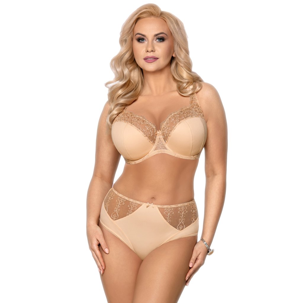 Elegantná polovystužená podprsenka pre ženy s väčším poprsím.- horná časť košíčkov je pokrytá krásnou výšivkou