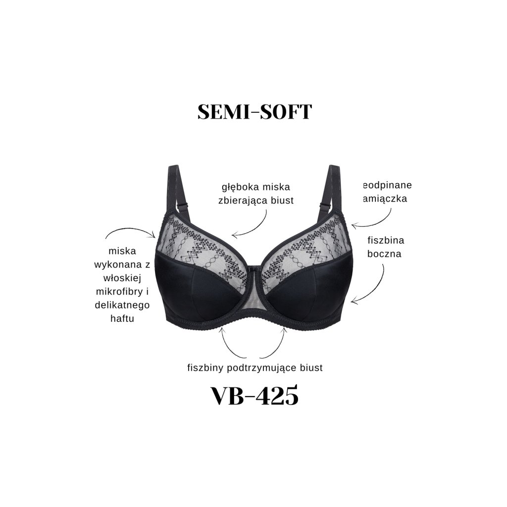 Elegantná polovystužená podprsenka.- z mikrovlákna v kombinácii s tylom a krásnou výšivkou na hornej časti košíčkov