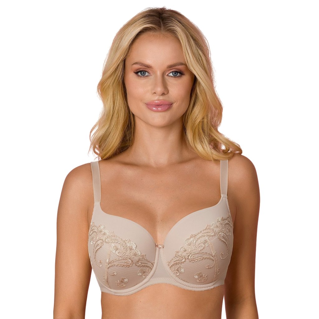 Elegantná vystužená dámska podprsenka.košíčky pokryté kvetinovou výšivkou